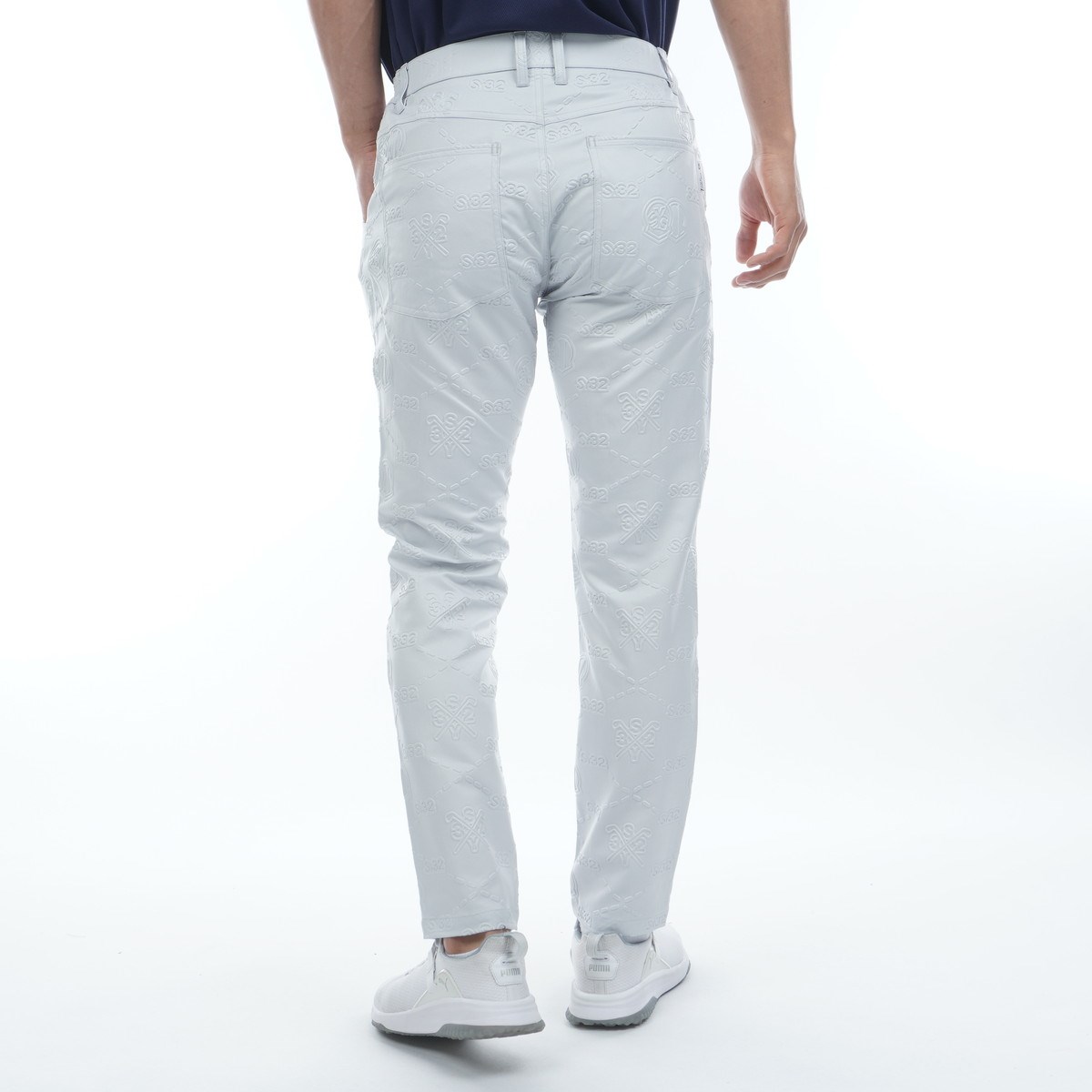 エンボスで総柄を表現した5ポケットパンツ。