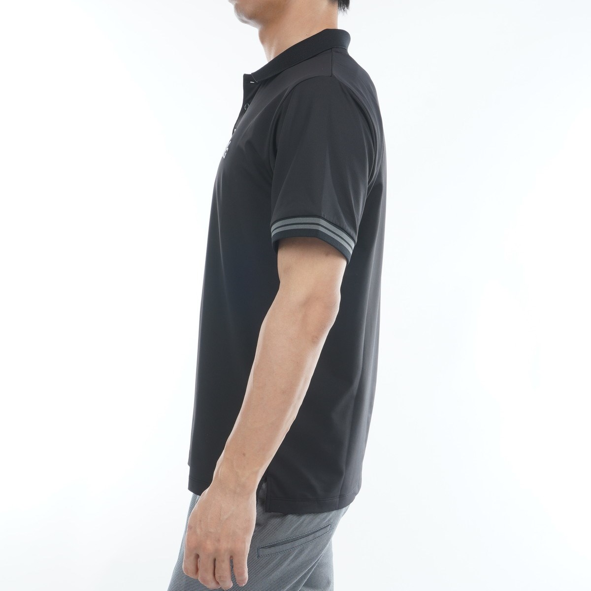通気性に優れたドライ素材を使用した半袖ポロシャツ。