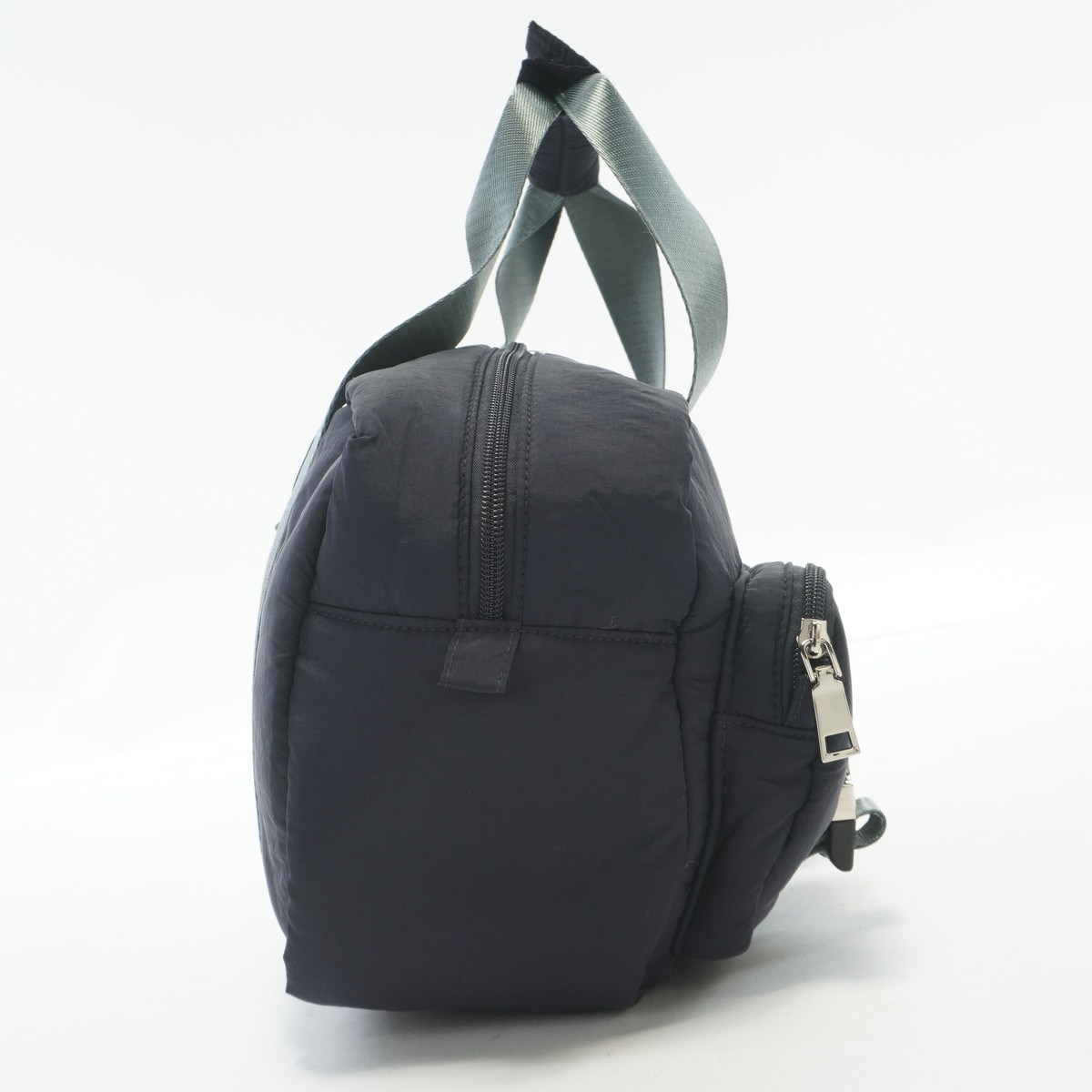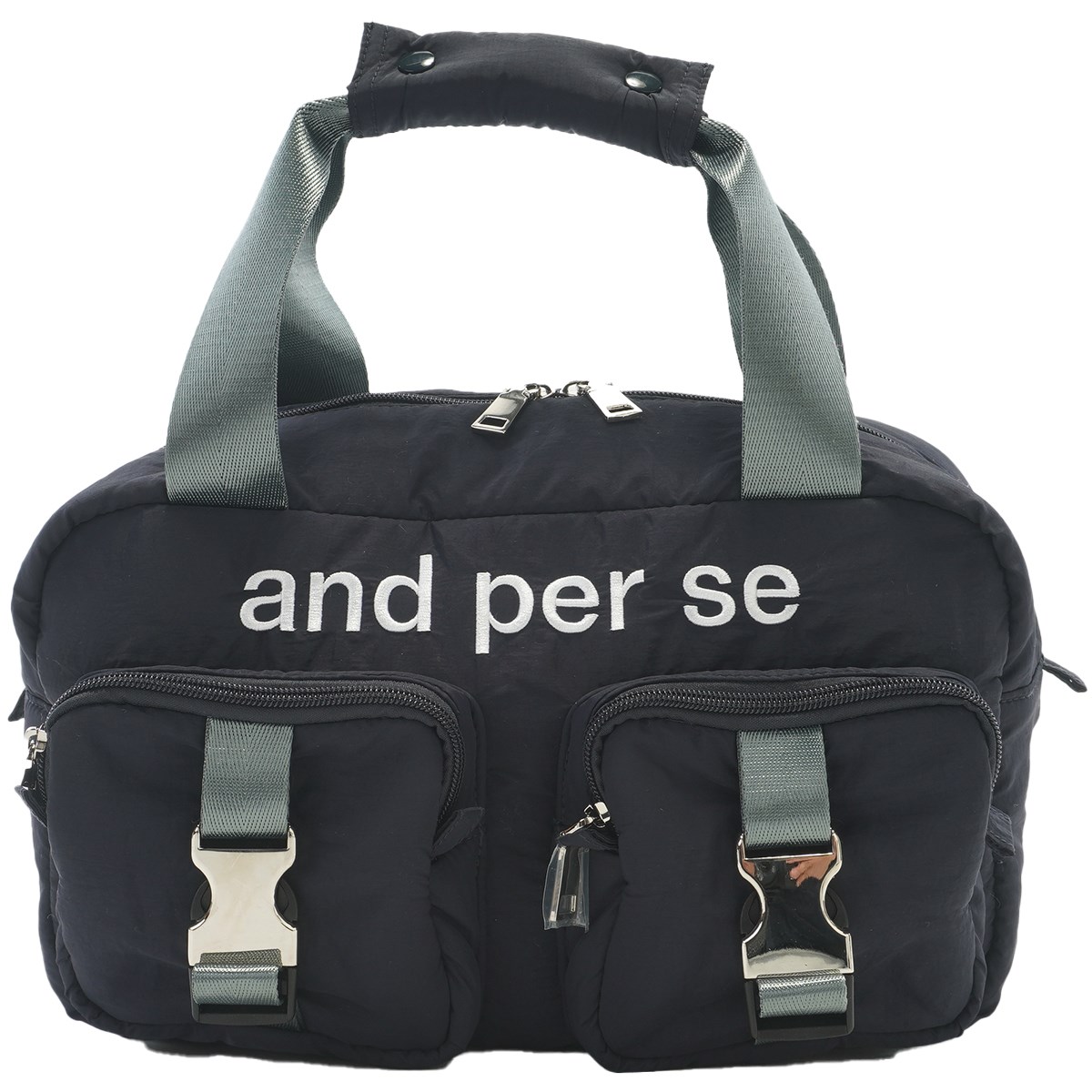 外側のファスナーポケット部分にキラッとシルバーの飾りバックルがスタイリッシュなアクセントになっています。
