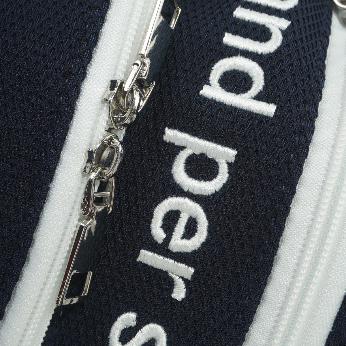 外側のファスナーポケット部分にキラッとシルバーの飾りバックルがスタイリッシュなアクセントになっています。