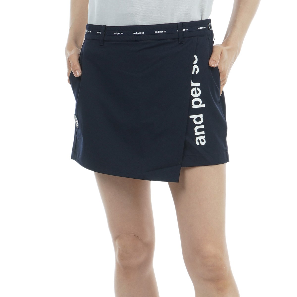 アンパスィ and per se ストレッチ スイングドライ ラップキュロットスカート M ネイビー レディス