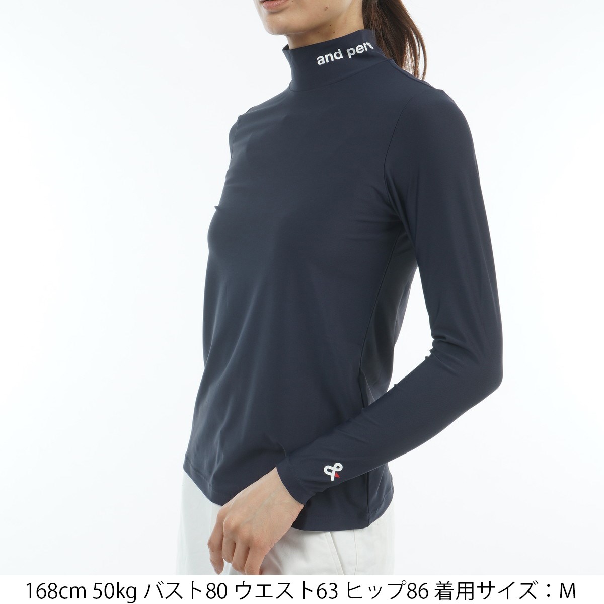 アンパスィ and per se ストレッチ ハイネック長袖インナーシャツ LL ネイビー レディス