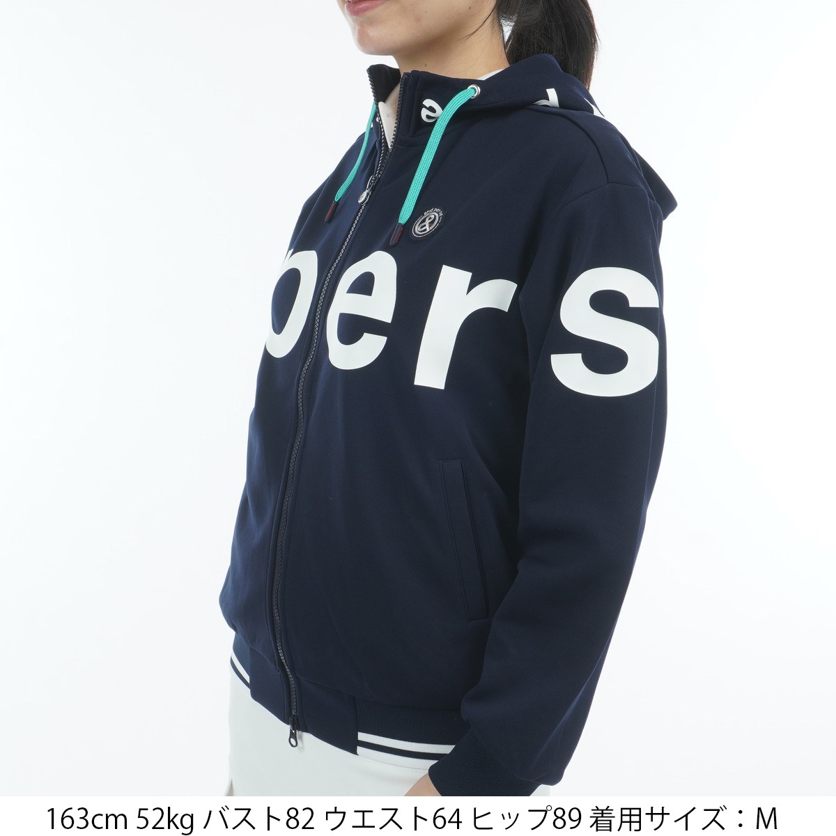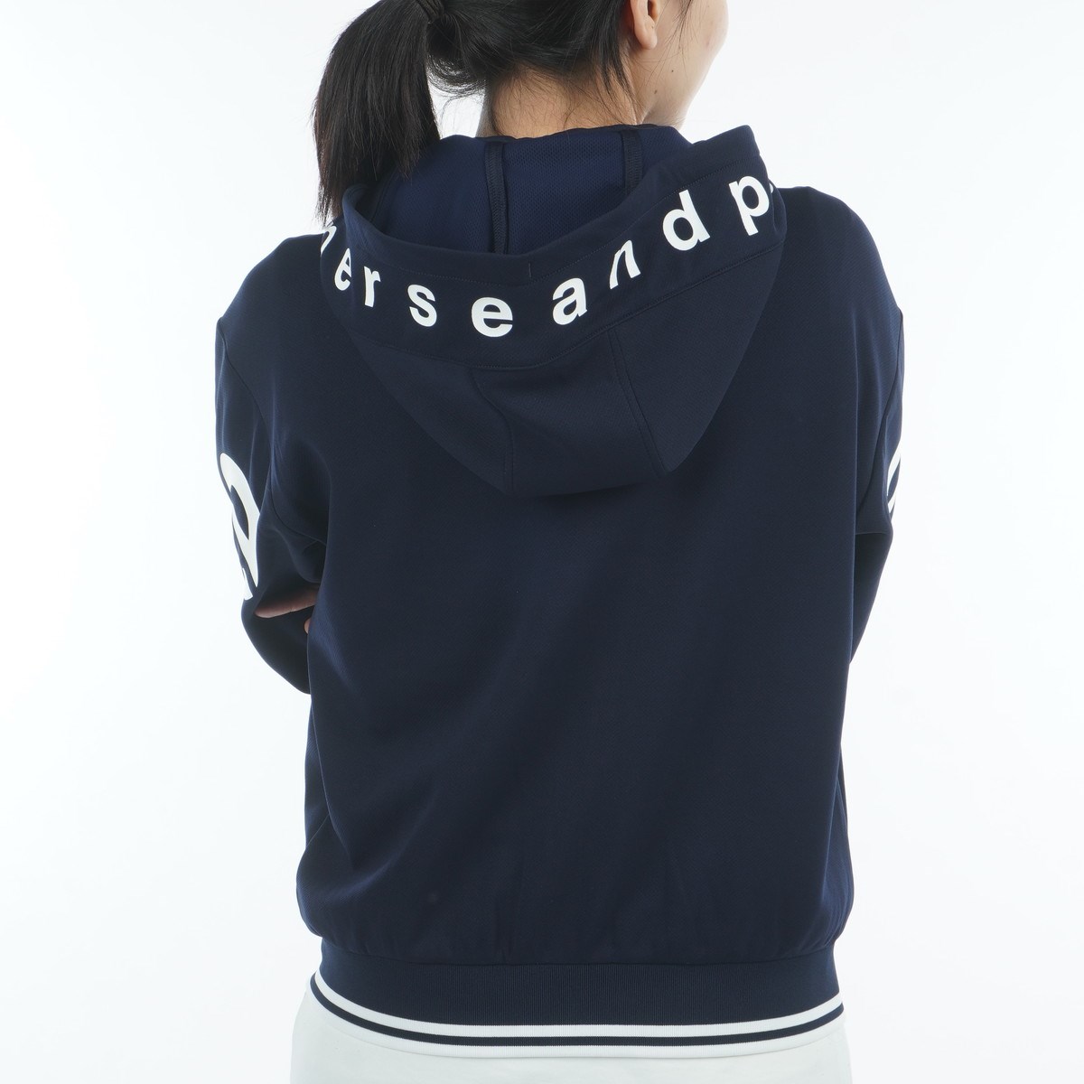 アンパスィ and per se ストレッチ エアロスウェット フーディーブルゾン M ネイビー レディス