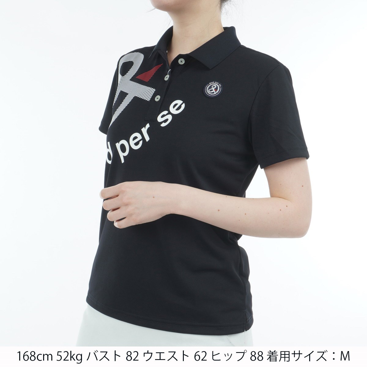 アンパスィ and per se ストレッチ スイングドライ 半袖ポロシャツ M ネイビー レディス