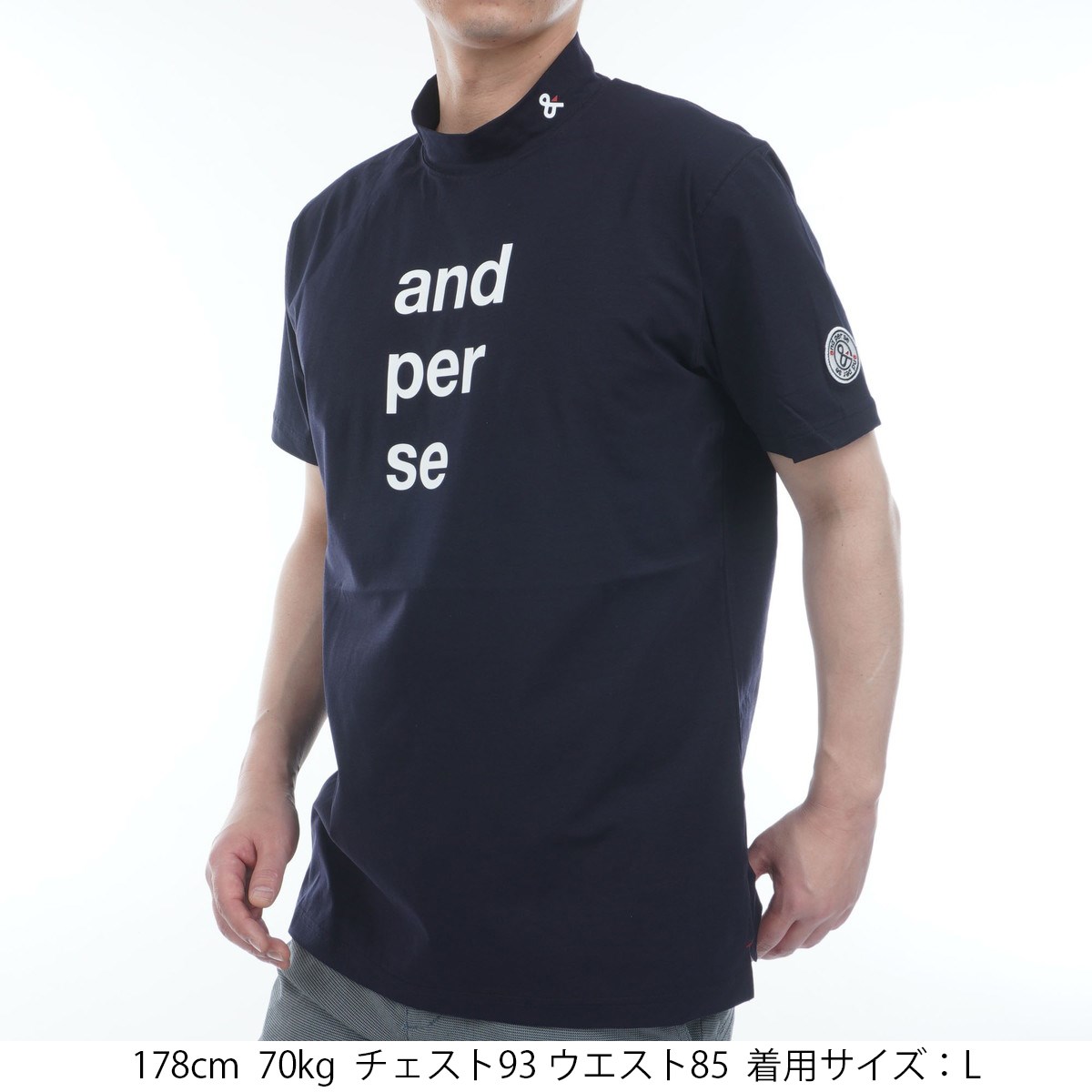 アンパスィ and per se ストレッチ リファインドライ モックネック半袖シャツ L ネイビー