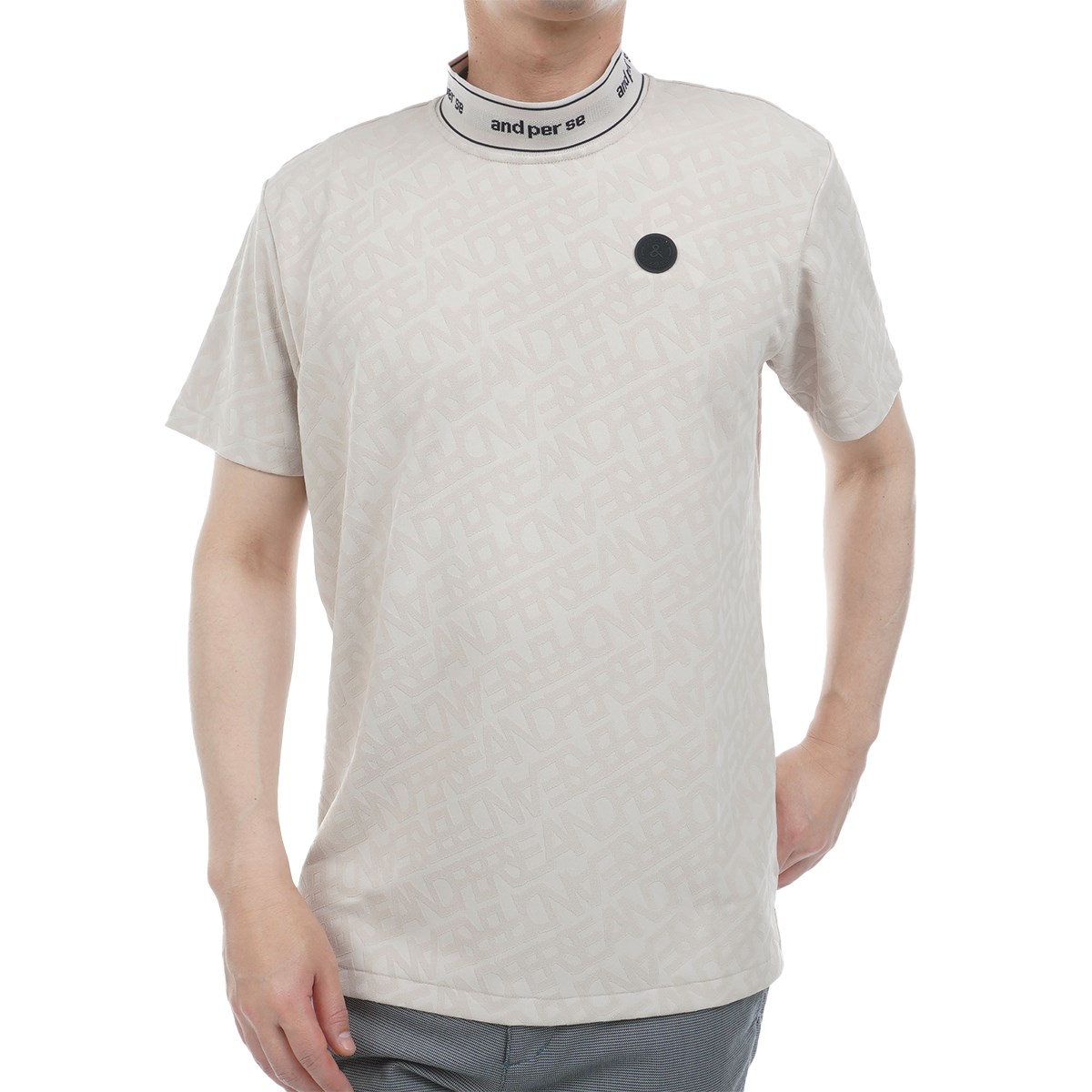 吸汗速乾、UV機能のついたロゴジャカードモック半袖シャツ。
