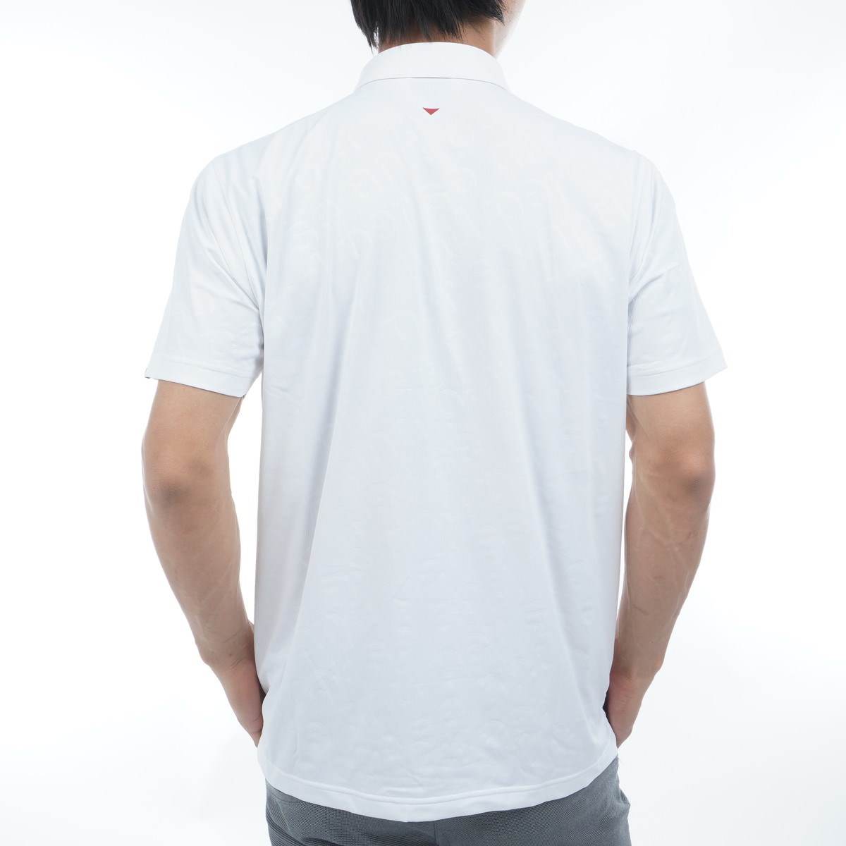 ブランドロゴ柄を地柄で表現した凹凸素材半袖ポロシャツ。
