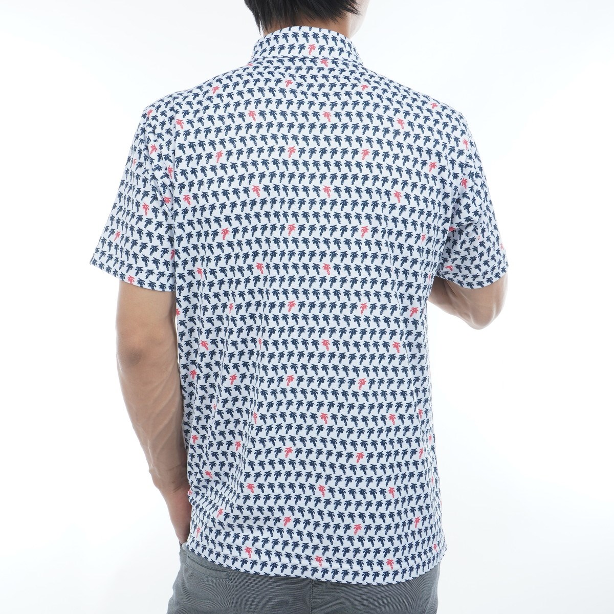 椰子の木をモチーフにした、総柄プリントポロシャツです。