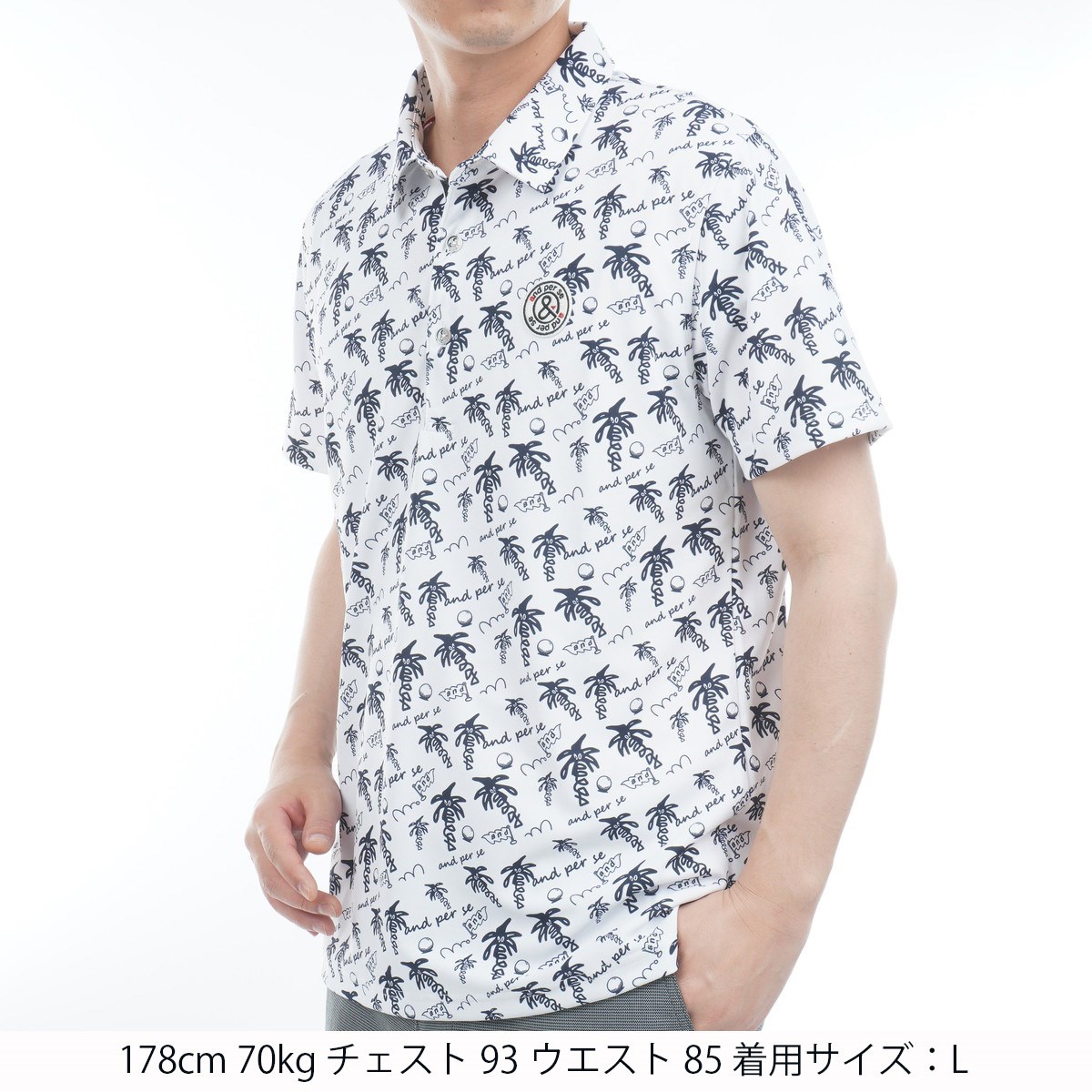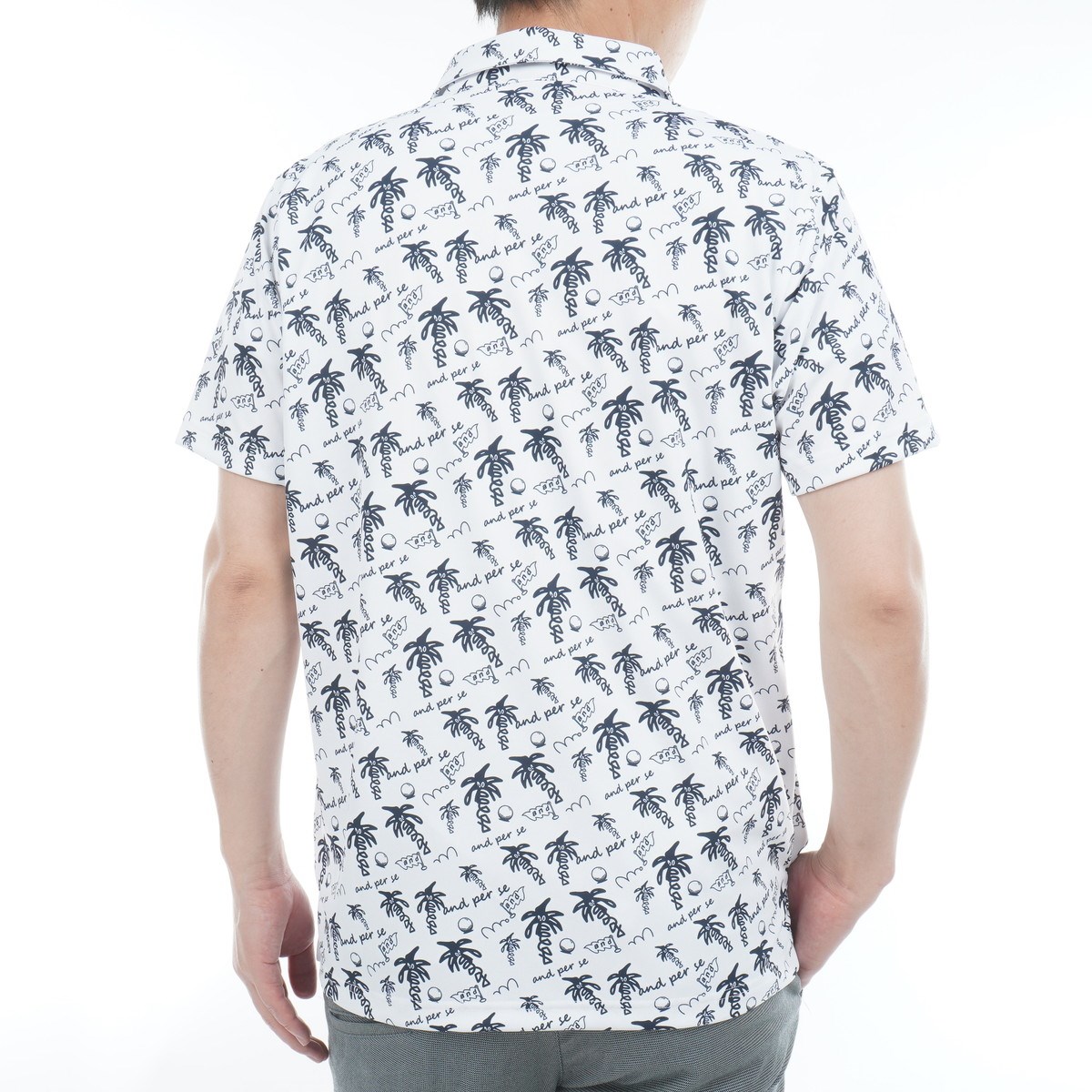 アンパスィ and per se ストレッチ ソルケアプリンテッド半袖スキッパーポロシャツ L ホワイト