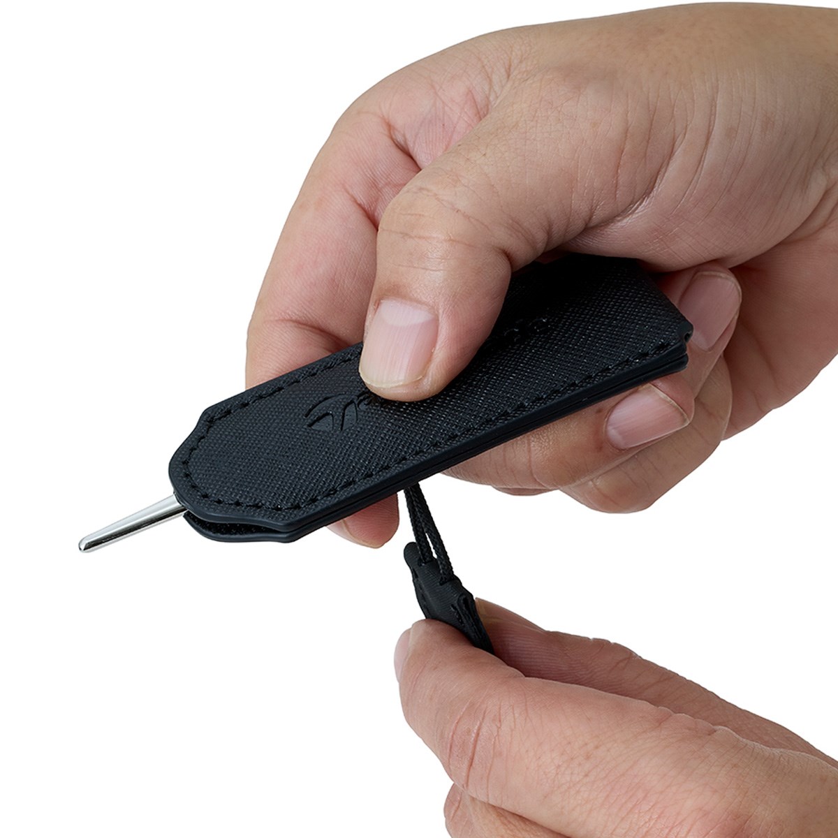 ツマミを引くとフォーク部がカバーから出て、終わったらすぐにケースに戻せるのでスマートに使用可能。