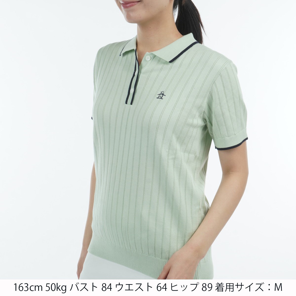 マンシングウェア Munsingwear STANDARD COLLECTION 14ゲージ 針抜きジャカード ニット半袖ポロシャツ L エメラルド 00 レディス