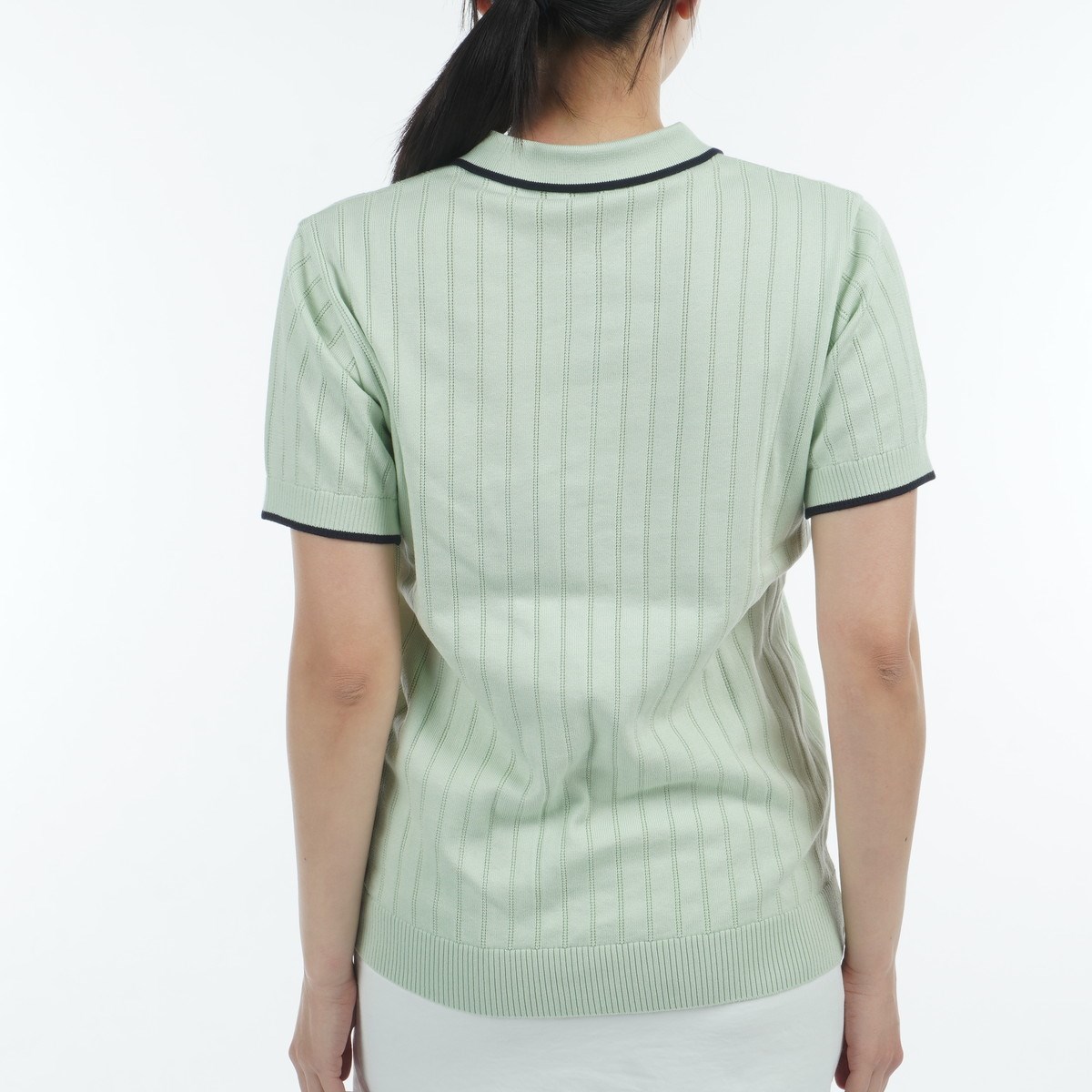 14Gの針抜き組織で編み上げた春らしいニット半袖ポロシャツ。
