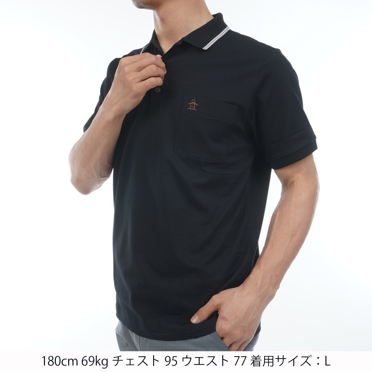 マンシングウェア Munsingwear STANDARD STYLE2833ハウンドツース ストレッチ半袖ポロシャツ 3L ブラック 00