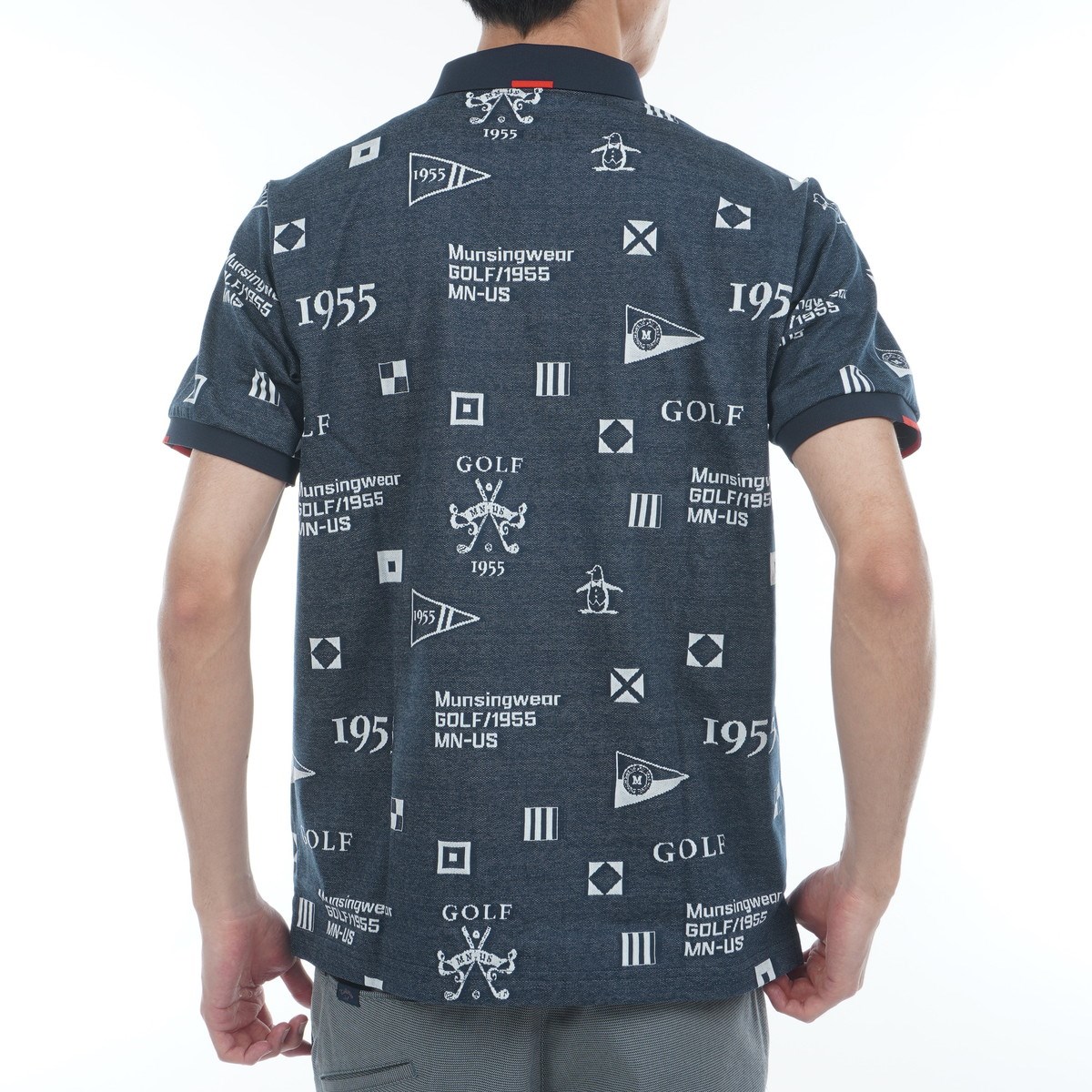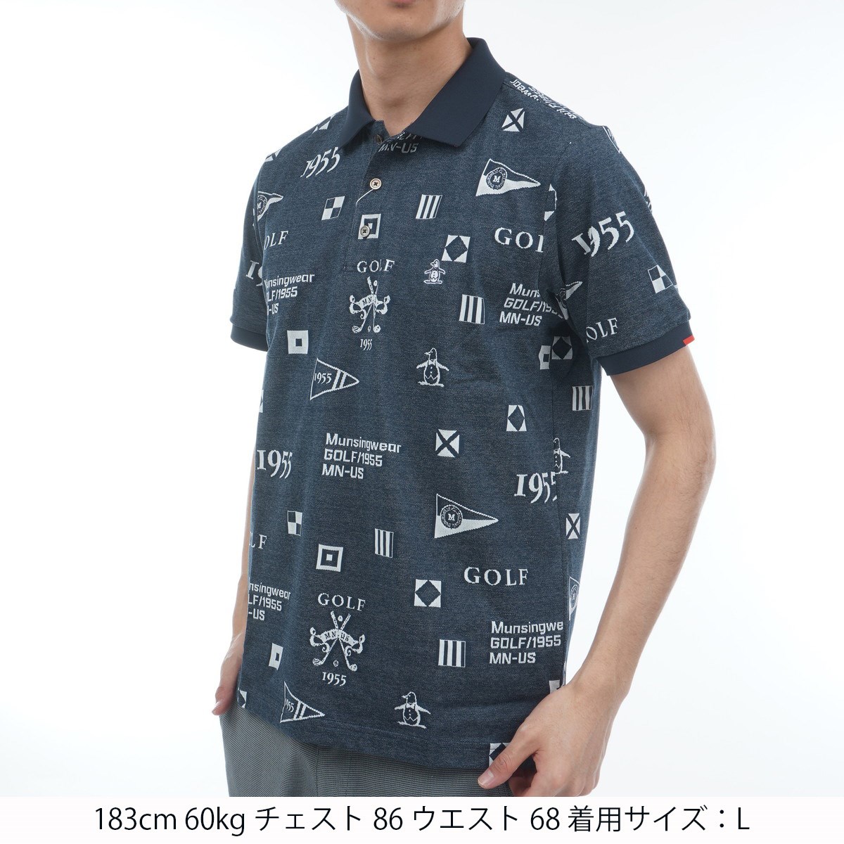 マンシングウェア Munsingwear SEASON フラッグモチーフジャガード半袖ポロシャツ M ネイビー 00