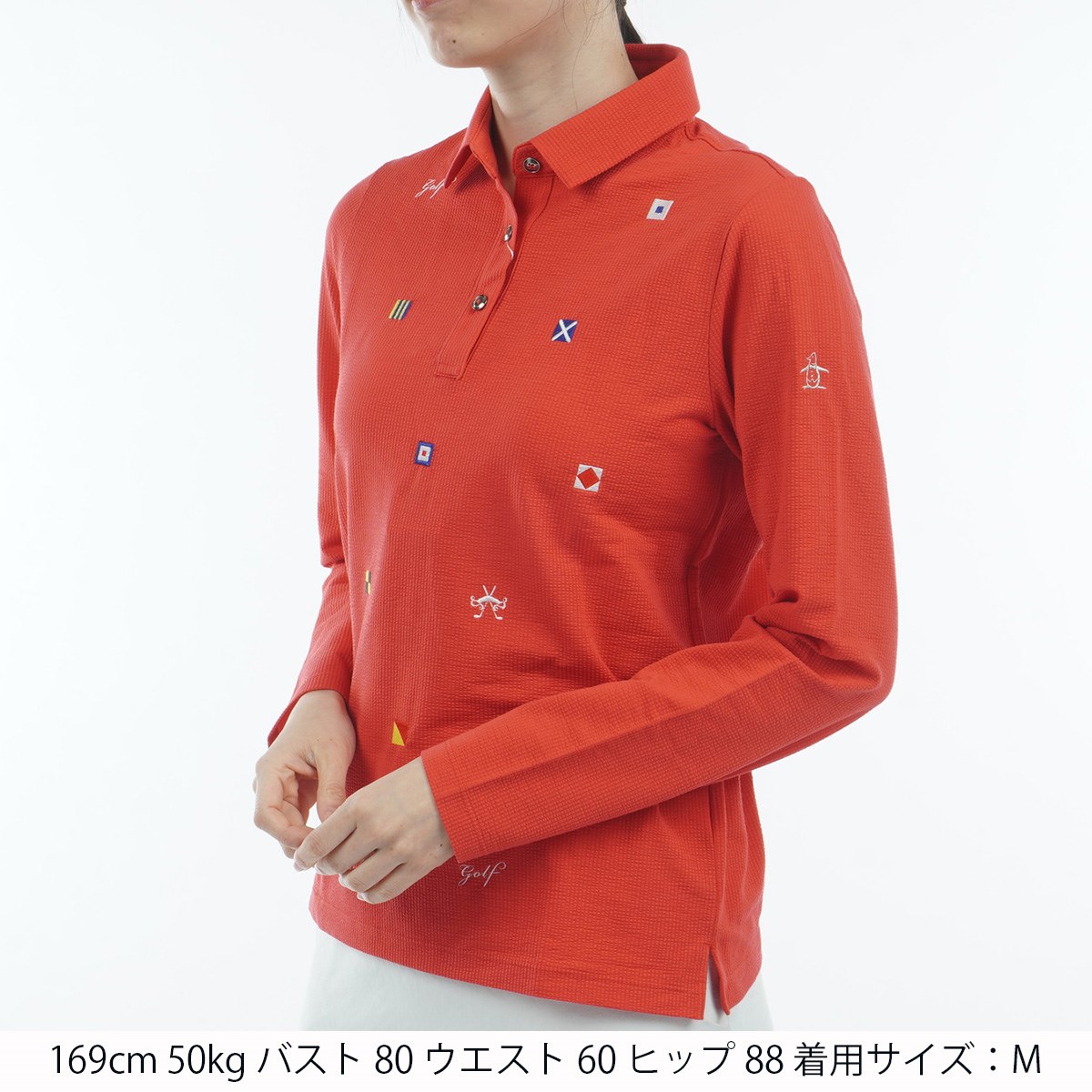 マンシングウェア Munsingwear SEASON COLLECTION ストレッチ サッカー+飛び刺繍 長袖ポロシャツ M レッド 00 レディス