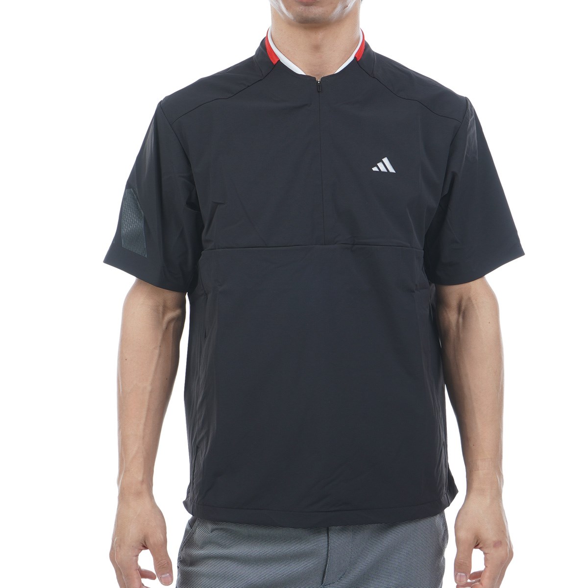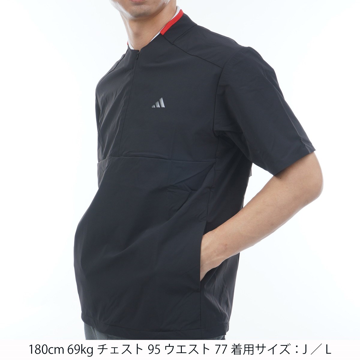 アディダス Adidas ストレッチ アディゼロ 撥水 ハーフジップ 半袖ウインドブレイカー J/XL ブラック
