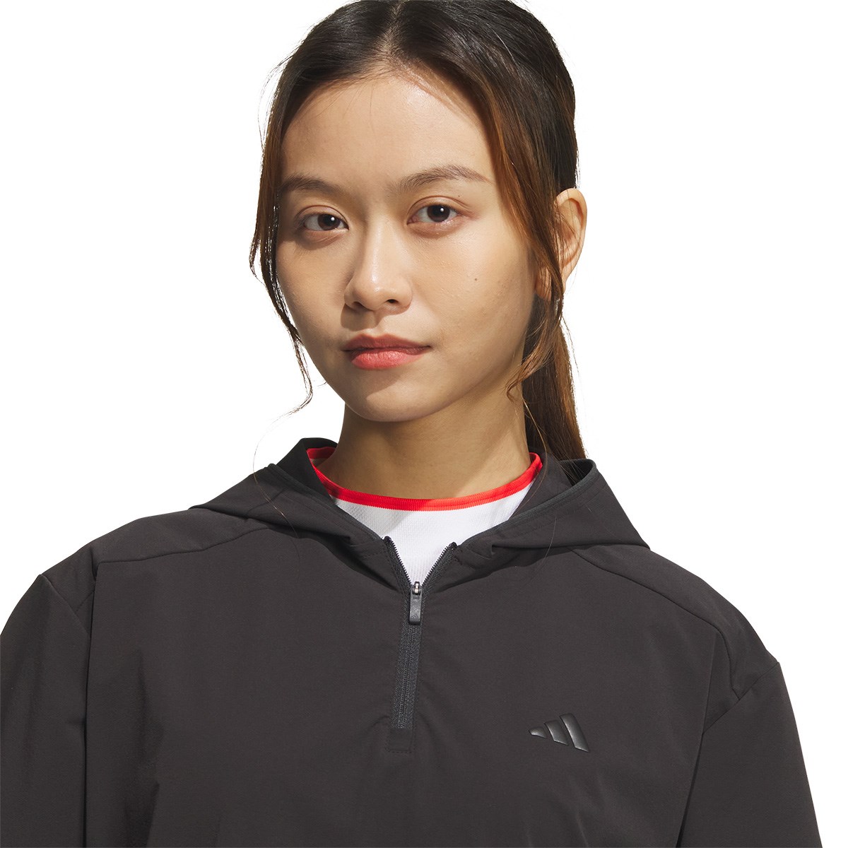 アディダス Adidas ストレッチ アディゼロ 撥水 ハーフジップ 半袖ウインドブレイカー J/M ブラック レディス
