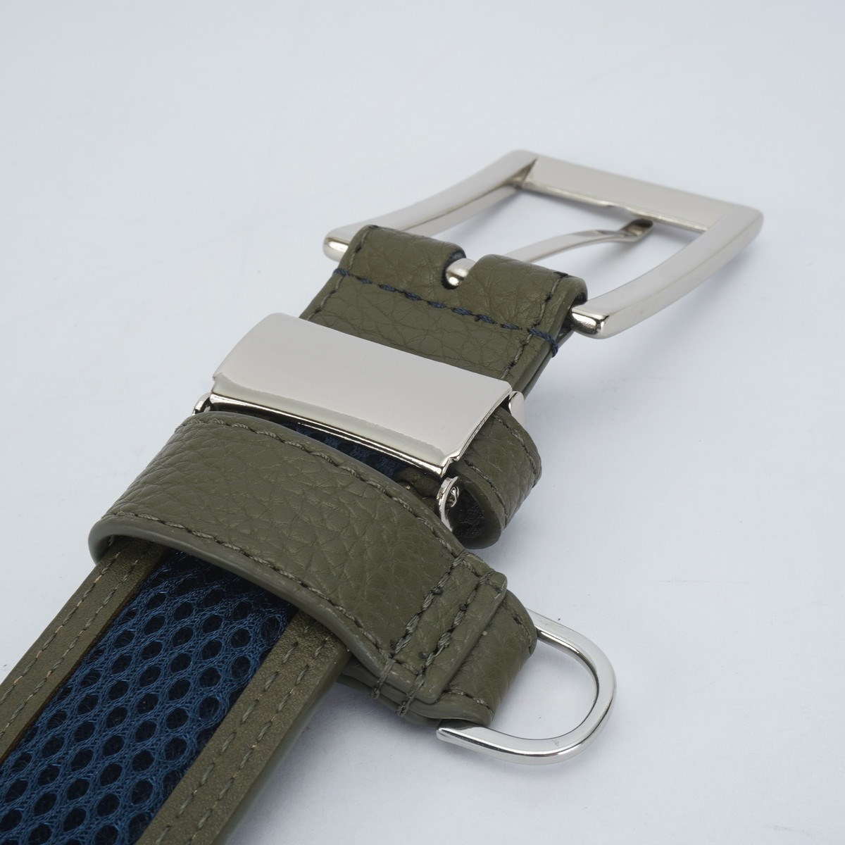 ロゴパンチングデザインがスポーティで、夏場のプレーを快適にしてくれるベルト。