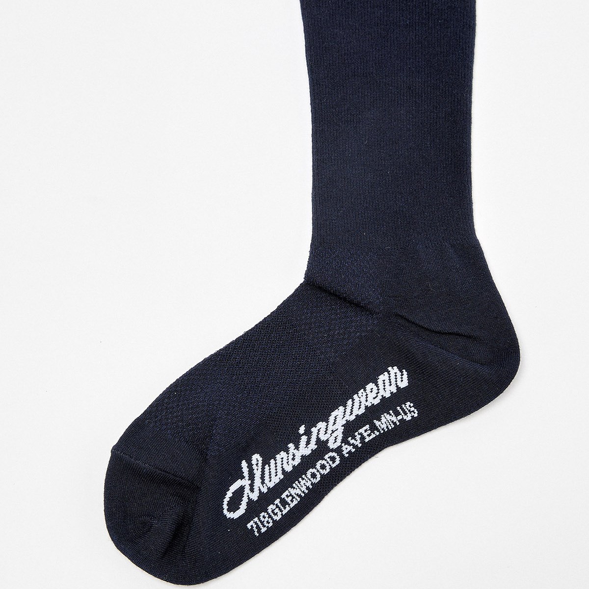 シンプルなライン入りのワンポイント刺繍なので、いろんなスタイルにも合わせやすいハイソックス。