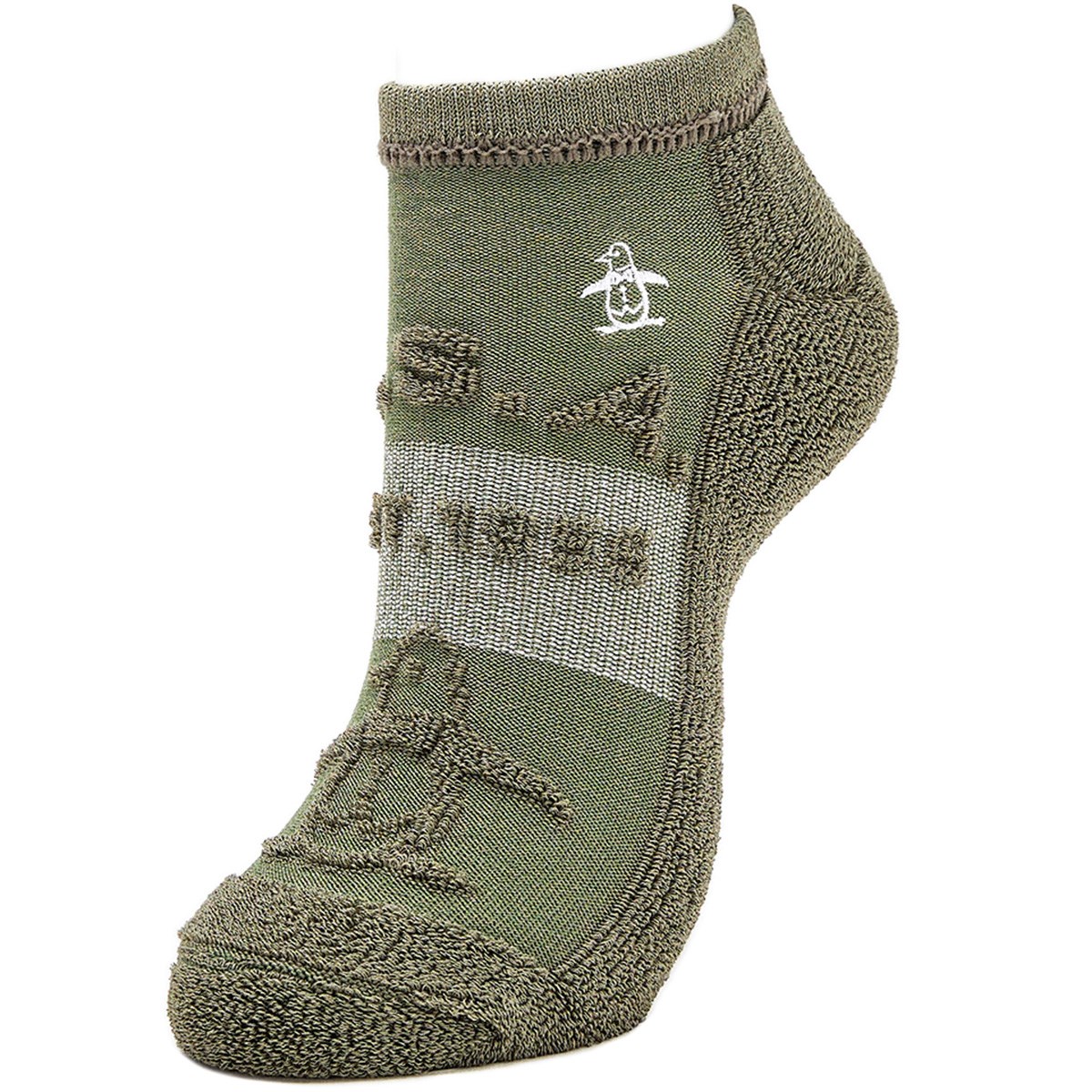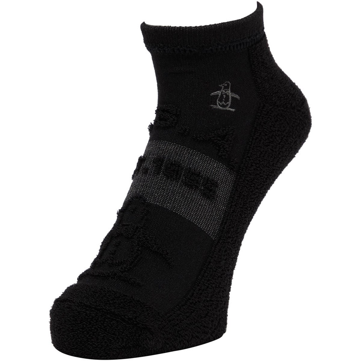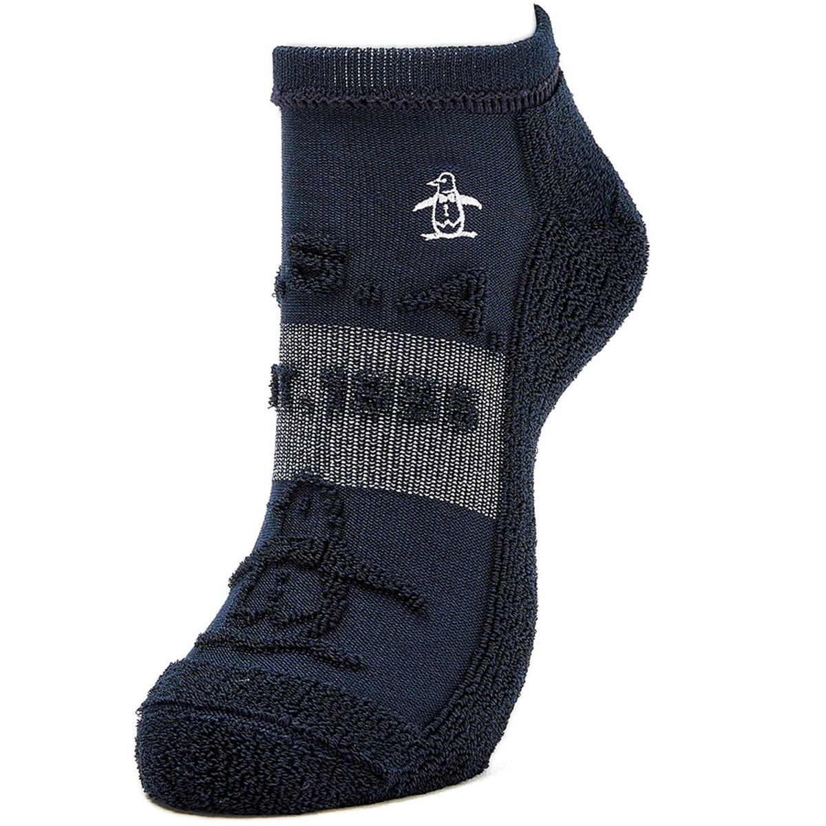 ペンギンとスポーティなロゴ表現をパイル編みしたアンクル丈ソックス。