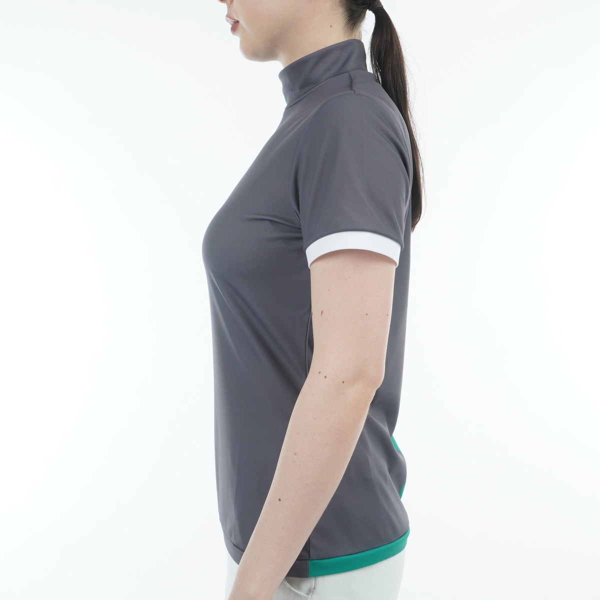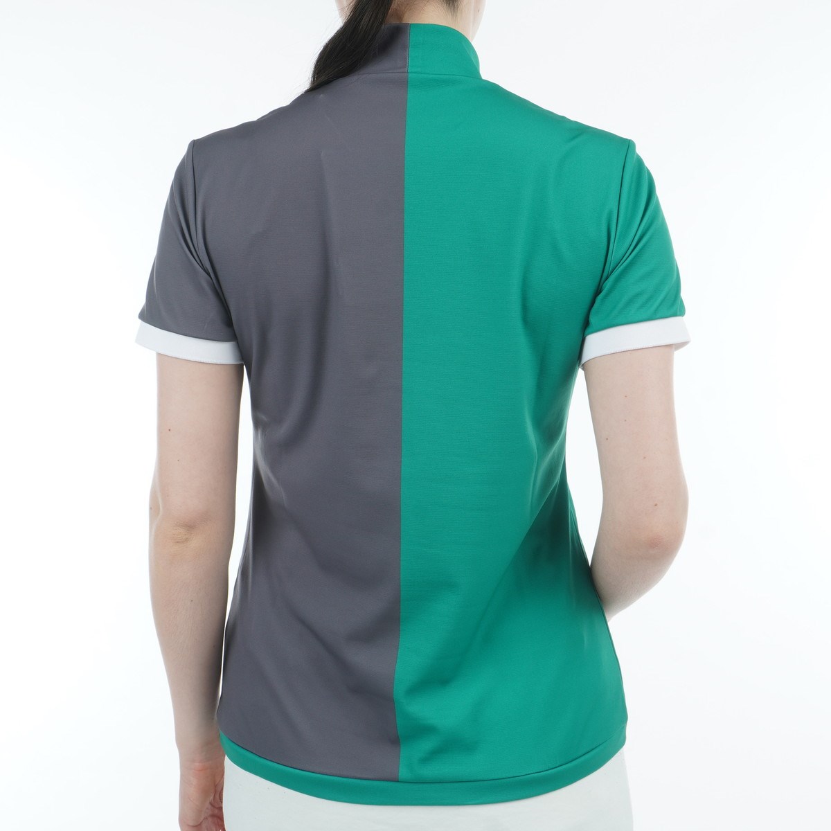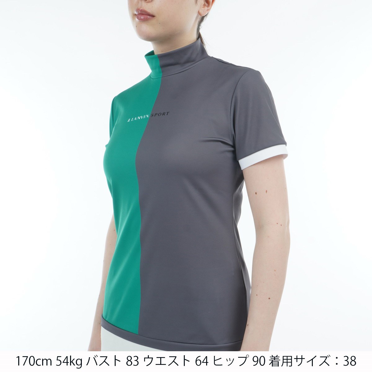 ランバン スポール LANVIN SPORT SUNSCREEN ストレッチ カラーブロックモックネック半袖シャツ 40 グリーン 04 レディス