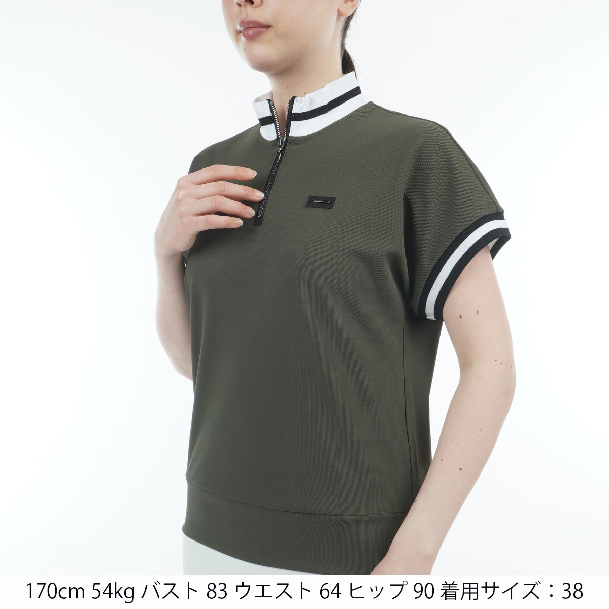 ランバン スポール LANVIN SPORT スタンドジップアップ ストレッチ 半袖シャツ 42 カーキ 03 レディス