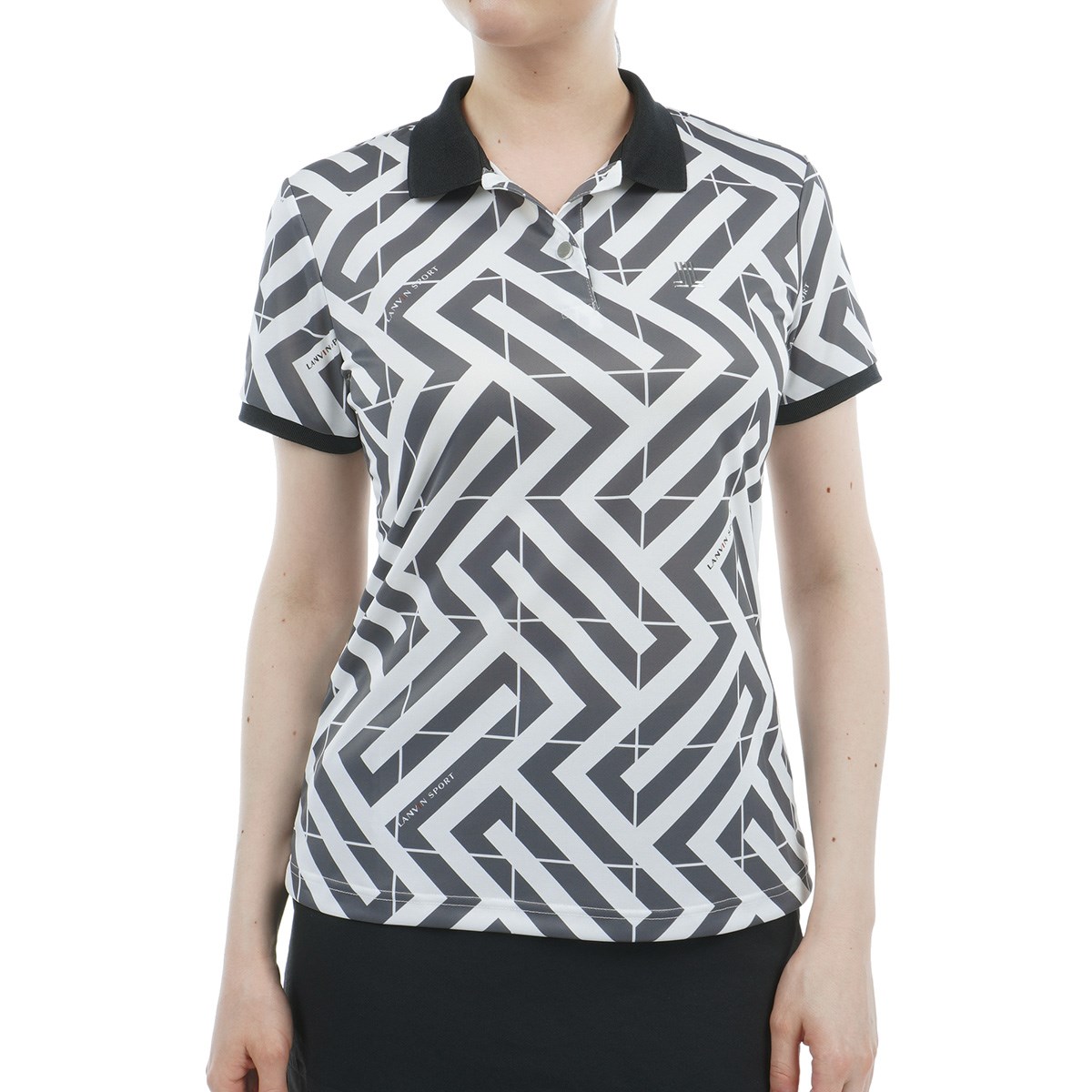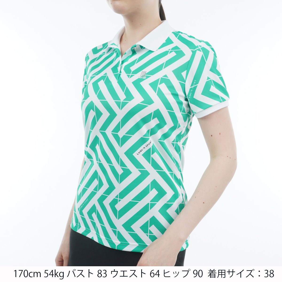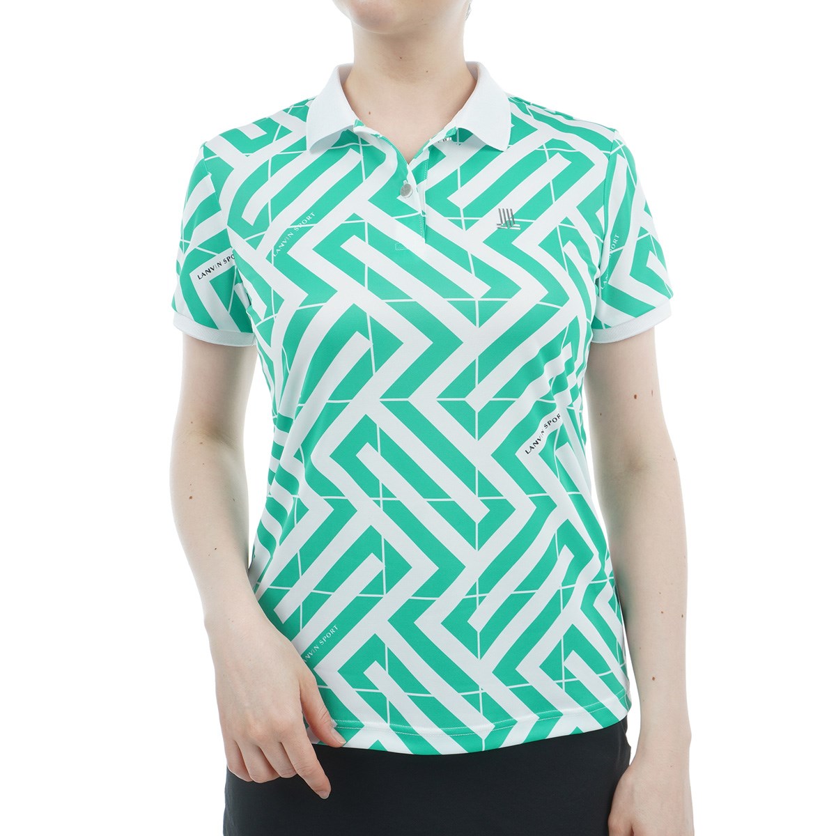 ランバン スポール LANVIN SPORT SUNSCREEN ストレッチ 幾何学柄プリント半袖ポロシャツ 38 グリーン 04 レディス