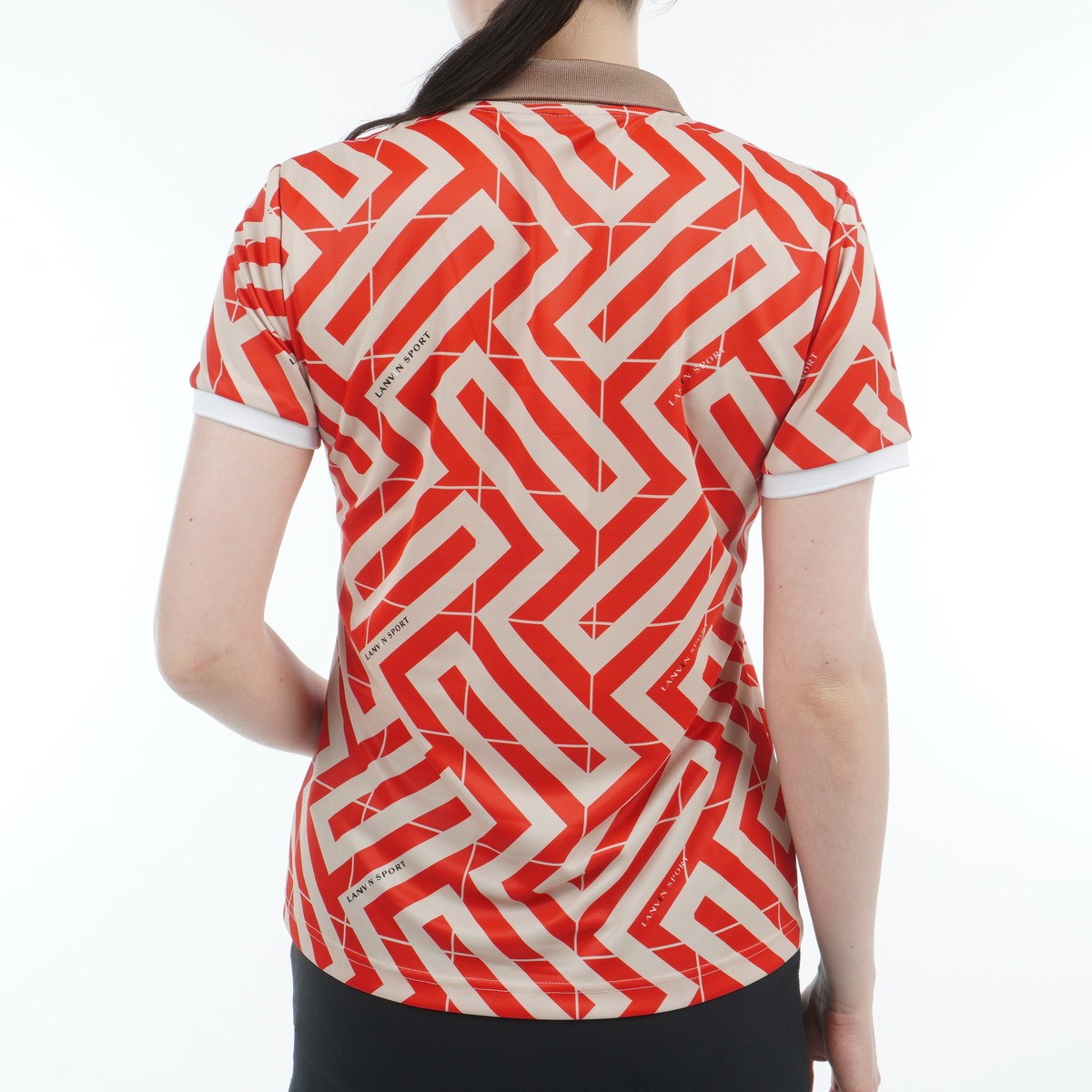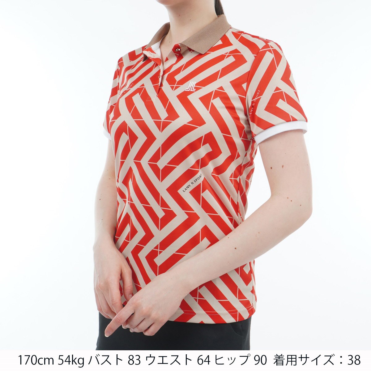 ランバン スポール LANVIN SPORT SUNSCREEN ストレッチ 幾何学柄プリント半袖ポロシャツ 40 レッド 04 レディス