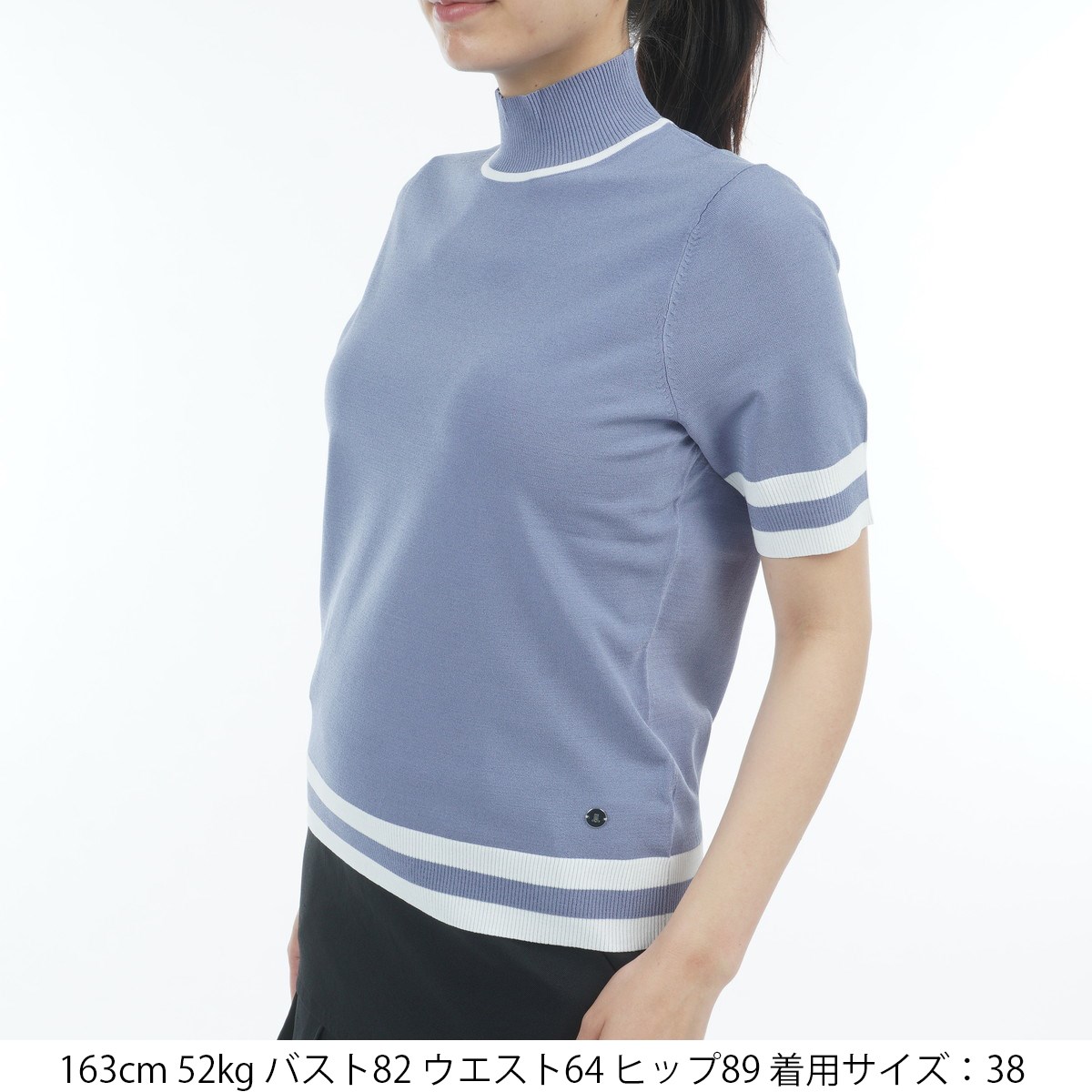 ランバン スポール LANVIN SPORT ストレッチ 5分袖ハイネックセーター 38 ブルー 02 レディス