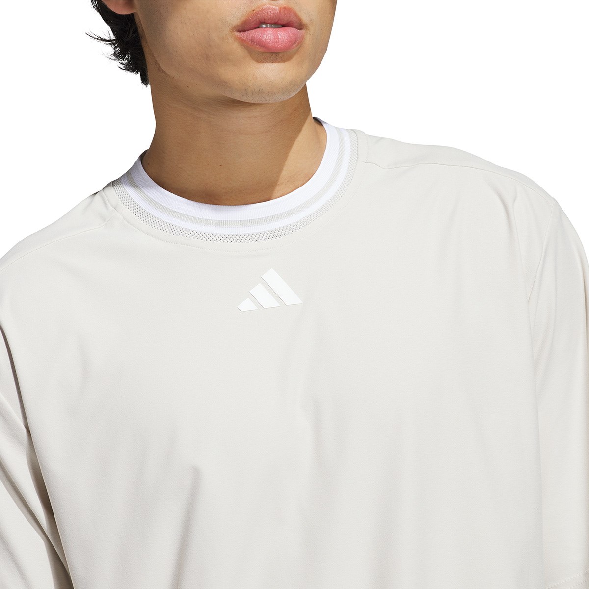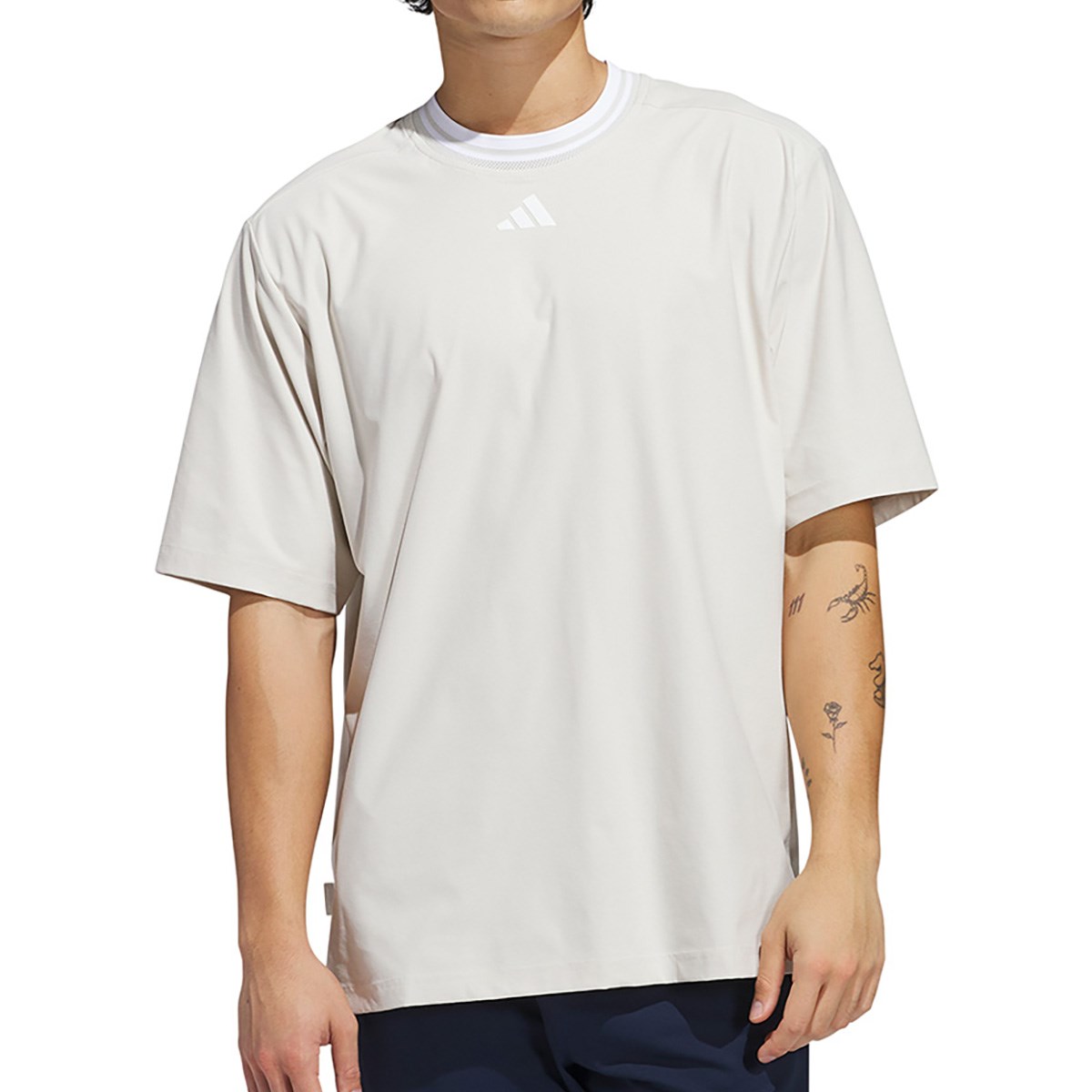 アディダス Adidas ビヨンド ザ コース ストレッチ ツイストニット ルーズフィット クルーネック半袖シャツ J/XL カレッジネイビー