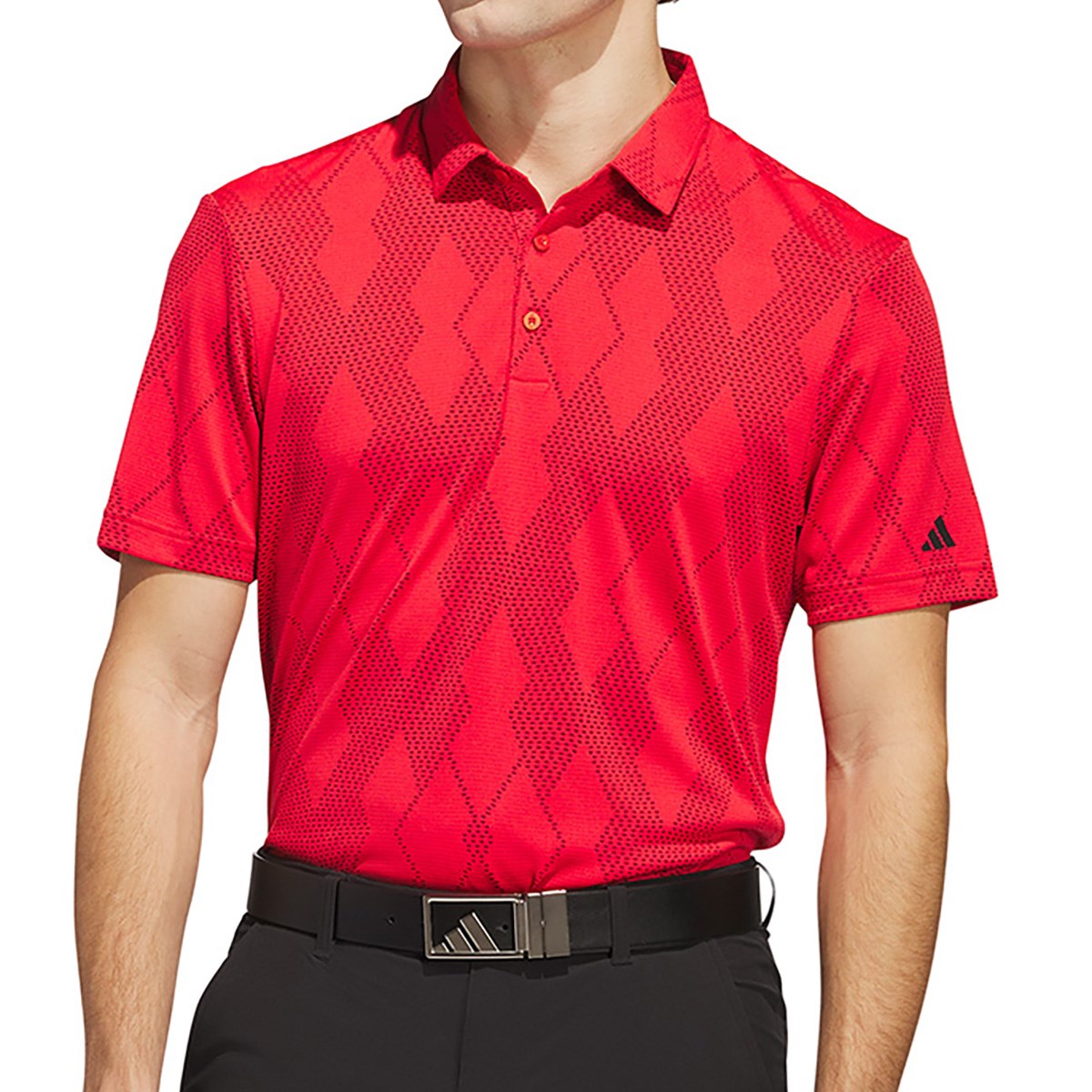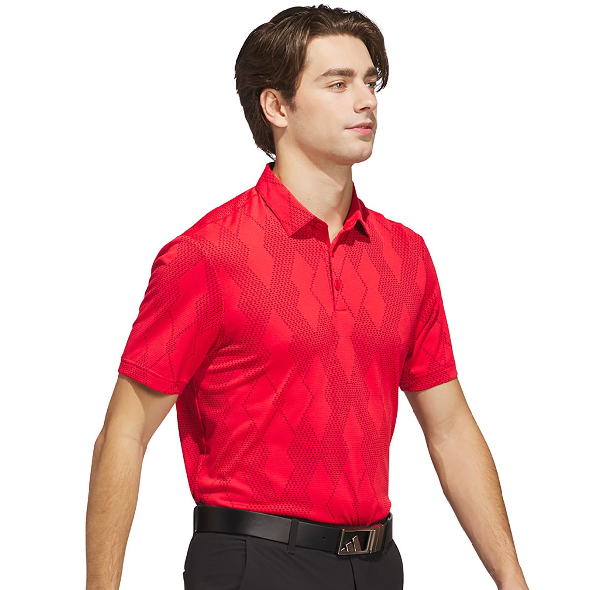 シーズナルジャガード柄のアーガイル調ひし形柄素材のメッシュ半袖ポロシャツ。