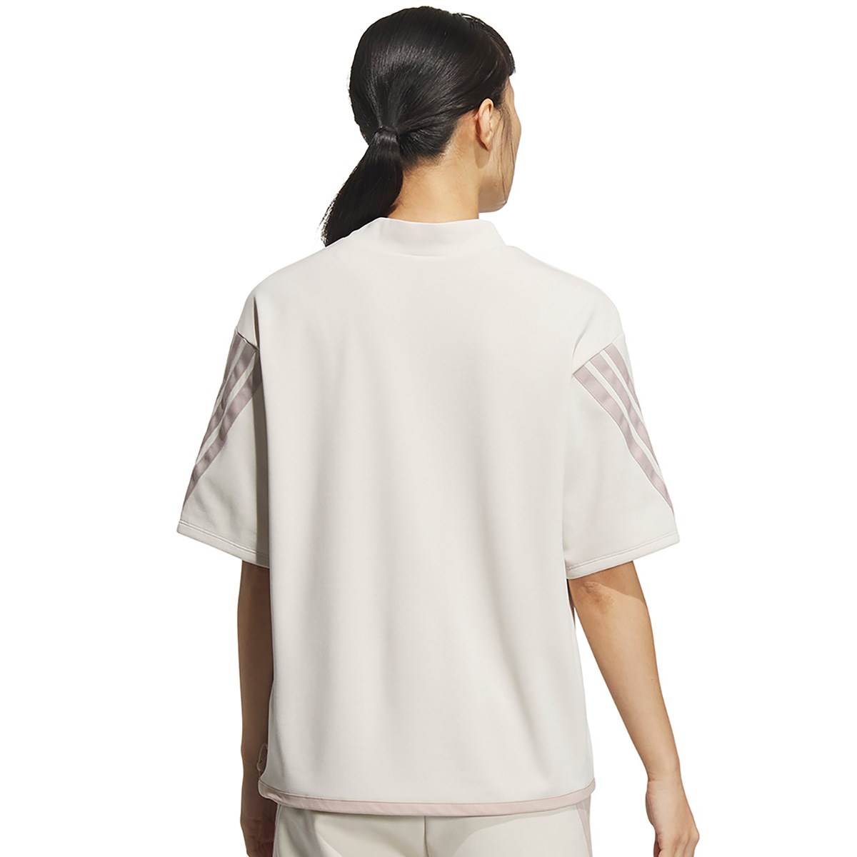 アディダス Adidas スリーストライプス ボックスシルエット モックネック 半袖シャツ J/S パウダーコーラル レディス