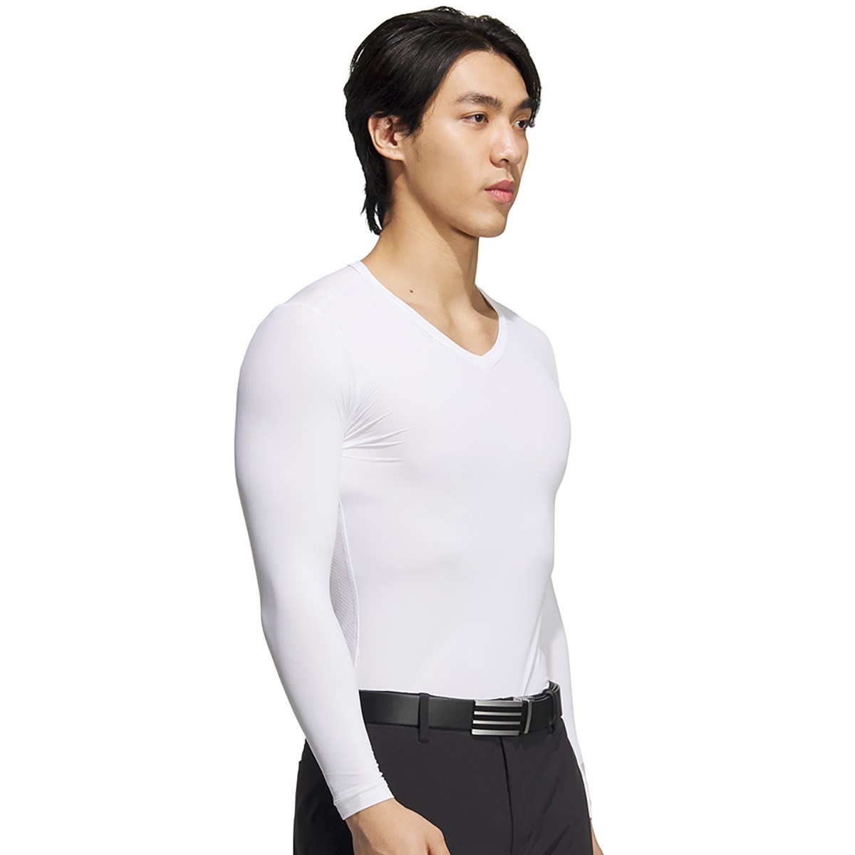 アディダス Adidas ストレッチ バックメッシュ Vネックベースレイヤー長袖インナーシャツ J/XL ホワイト