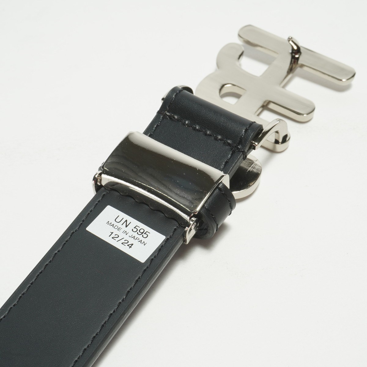 オリジナルのTMバックルが特徴的なレザーベルト。
