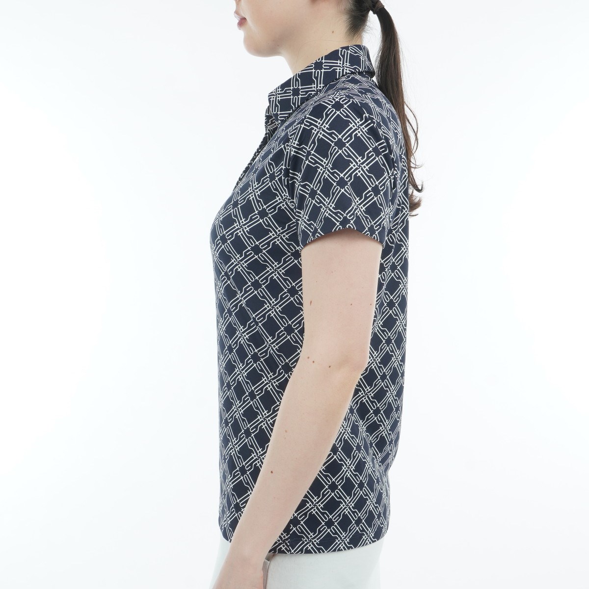 ルコックスポルティフ ゴルフ Le coq sportif GOLF ストレッチ 総柄半袖ポロシャツ S ネイビー 00 レディス