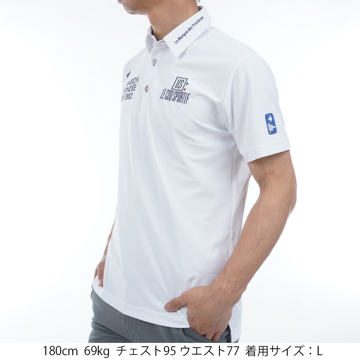 ■ルコックスポルティフらしいスポーティさを演出する、両胸の刺繍がポイント。