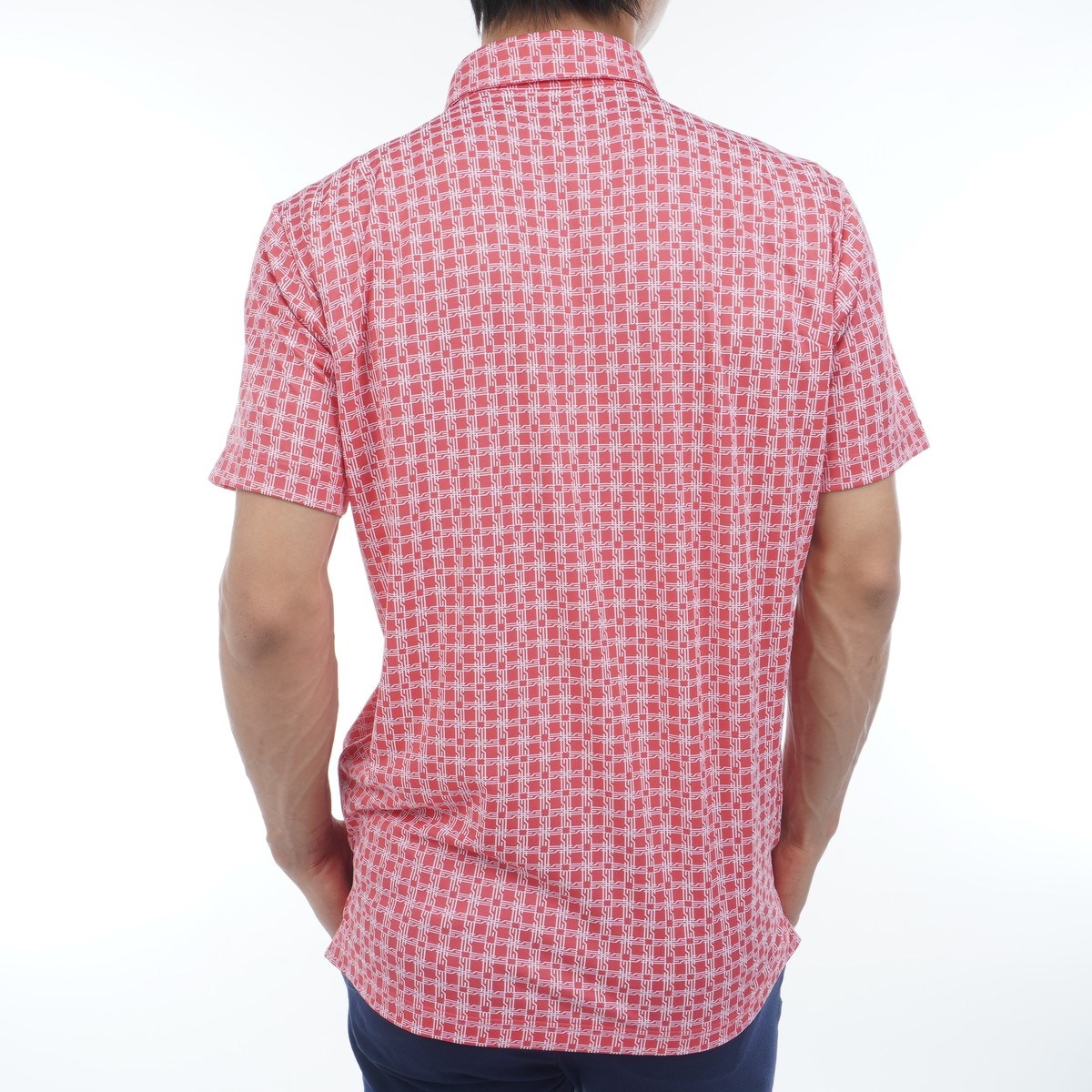 上品なジャガードで格子柄を表現した半袖ポロシャツ。