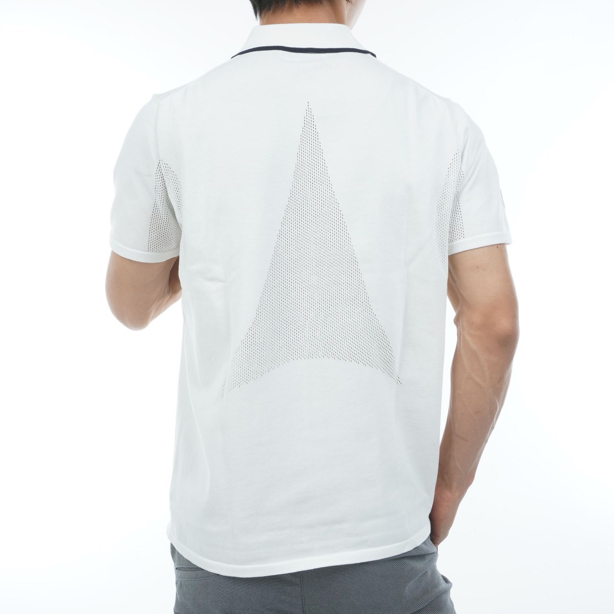 快適な着心地と洗練されたデザインが魅力のニット半袖ポロシャツ。