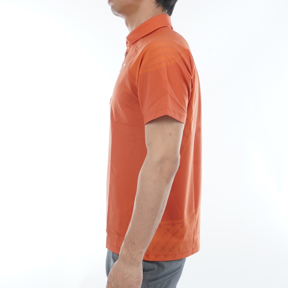 ゴルフスイング時のストレスを最大限に少なくする理論に基づき、DISC OSAKA(DESCENTE INNOVATION STUDIO COMPLEX 弊社研究開発拠点)にて共同開発した半袖ポロシャツ。
