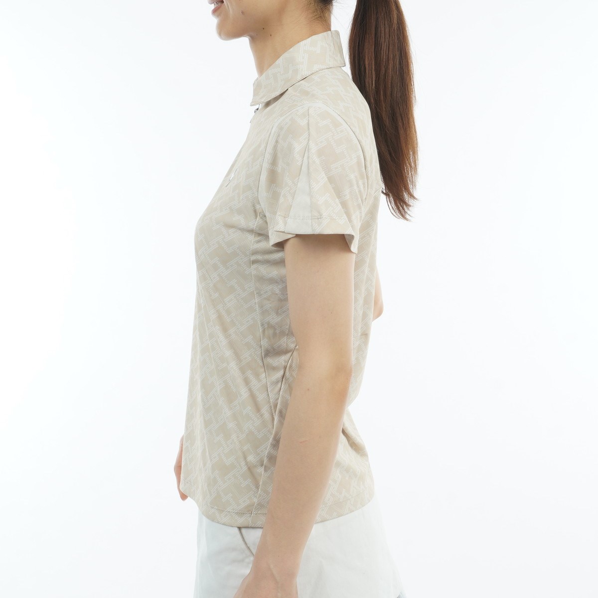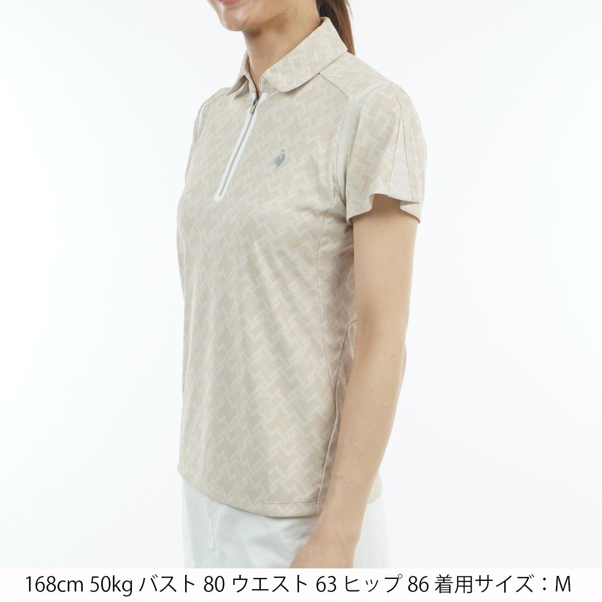 ルコックスポルティフ ゴルフ Le coq sportif GOLF RIJOUME ストレッチ モノグラム柄ハーフジップ半袖ポロシャツ LL ベージュ 00 レディス
