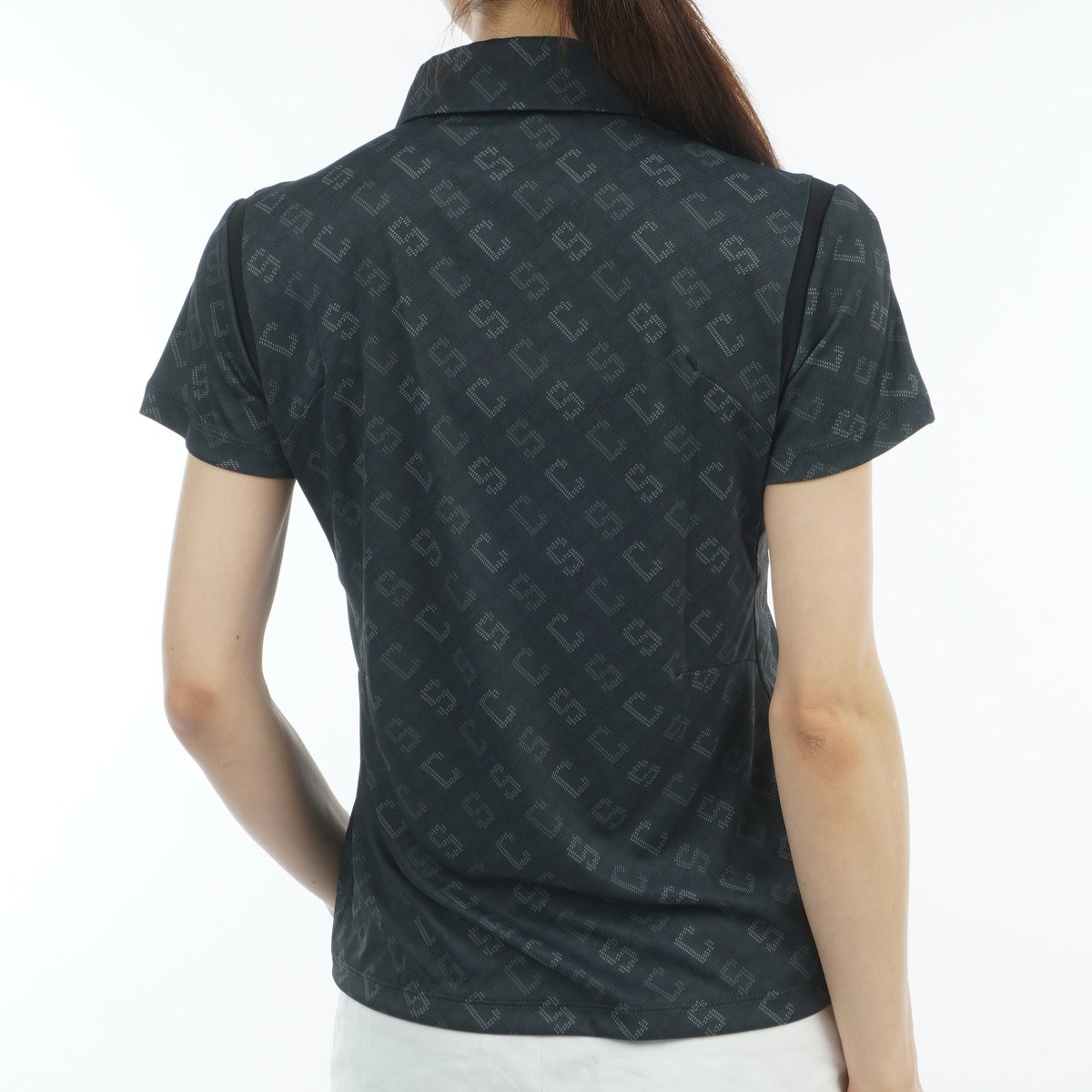 ルコックスポルティフ ゴルフ Le coq sportif GOLF RIJOUME ストレッチ モノグラム柄ハーフジップ半袖ポロシャツ M グレー 00 レディス