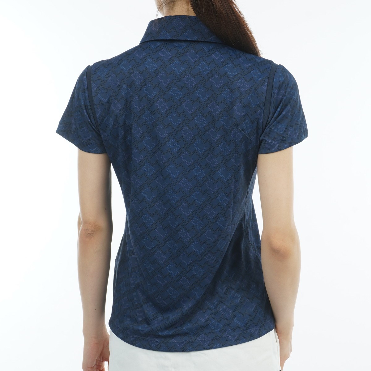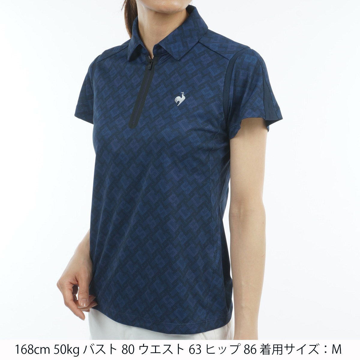 ルコックスポルティフ ゴルフ Le coq sportif GOLF RIJOUME ストレッチ モノグラム柄ハーフジップ半袖ポロシャツ L ネイビー 00 レディス