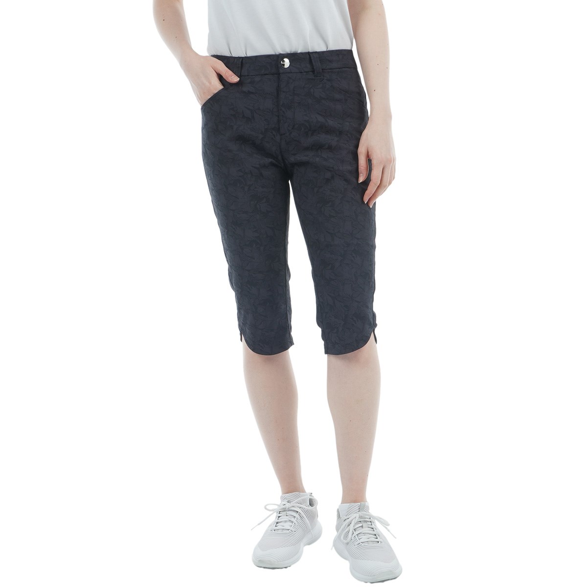 リーフ柄のストレッチジャガード素材を使用したカプリパンツ。