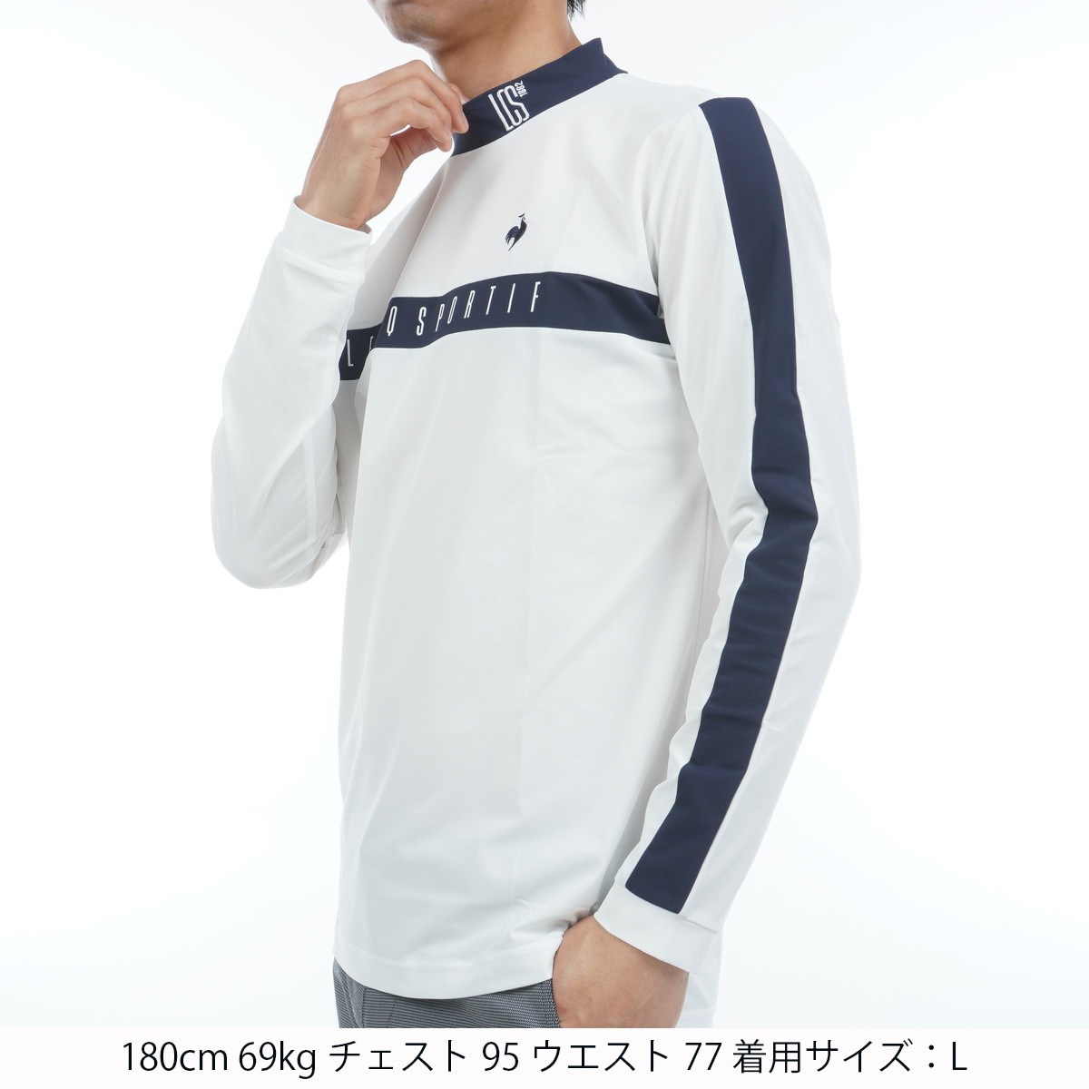 ルコックスポルティフ ゴルフ Le coq sportif GOLF ストレッチ 鹿の子素材 モックネック長袖シャツ L ホワイト 00