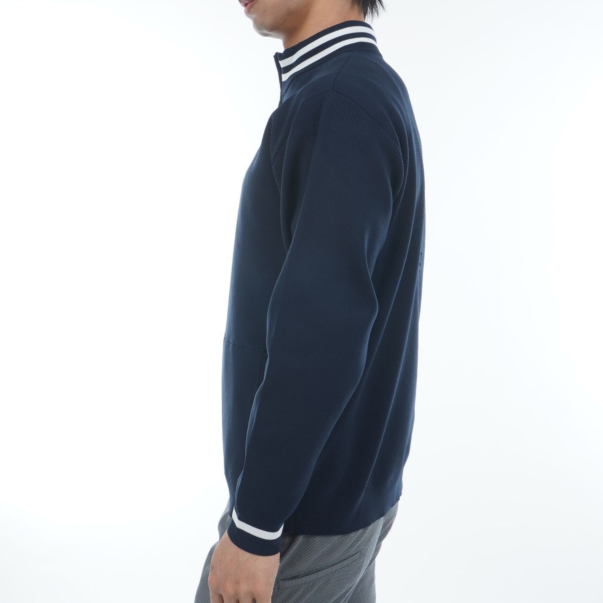 スポーティーでクラシカルなデザインの、撥水機能付きジップアップセーター。
