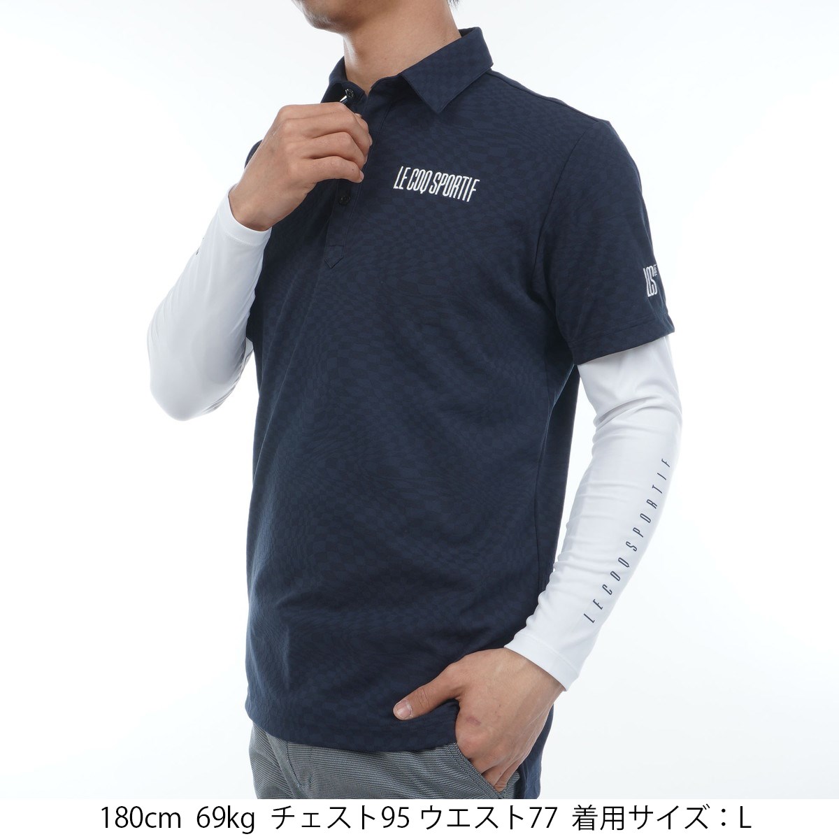 ルコックスポルティフ ゴルフ Le coq sportif GOLF ストレッチ 長袖インナーシャツ付き2WAY半袖ポロシャツ L ネイビー 00