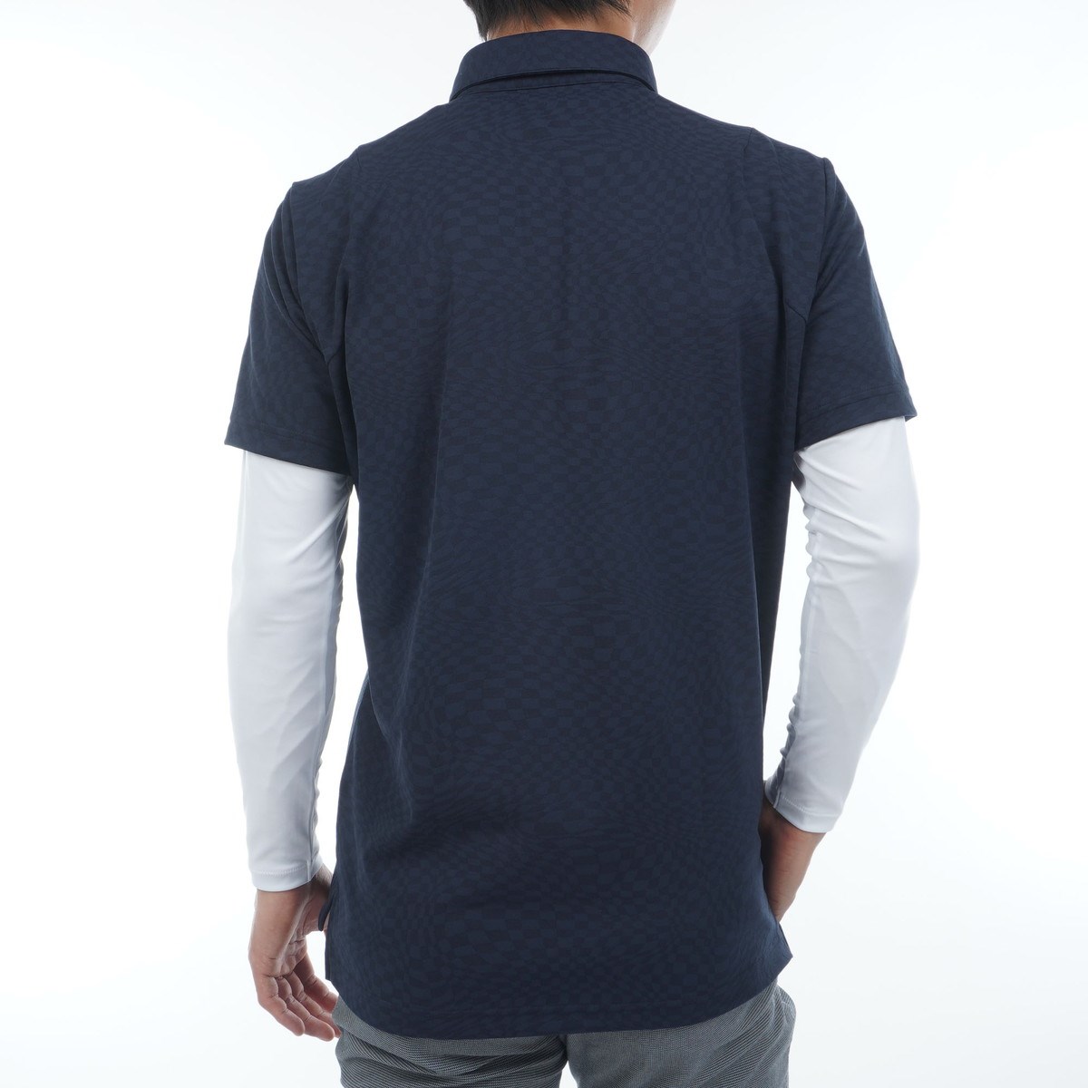 ■素材:半袖ポロシャツはストレッチ性に優れたジャガード素材。上品な光沢感とソフトな風合い。