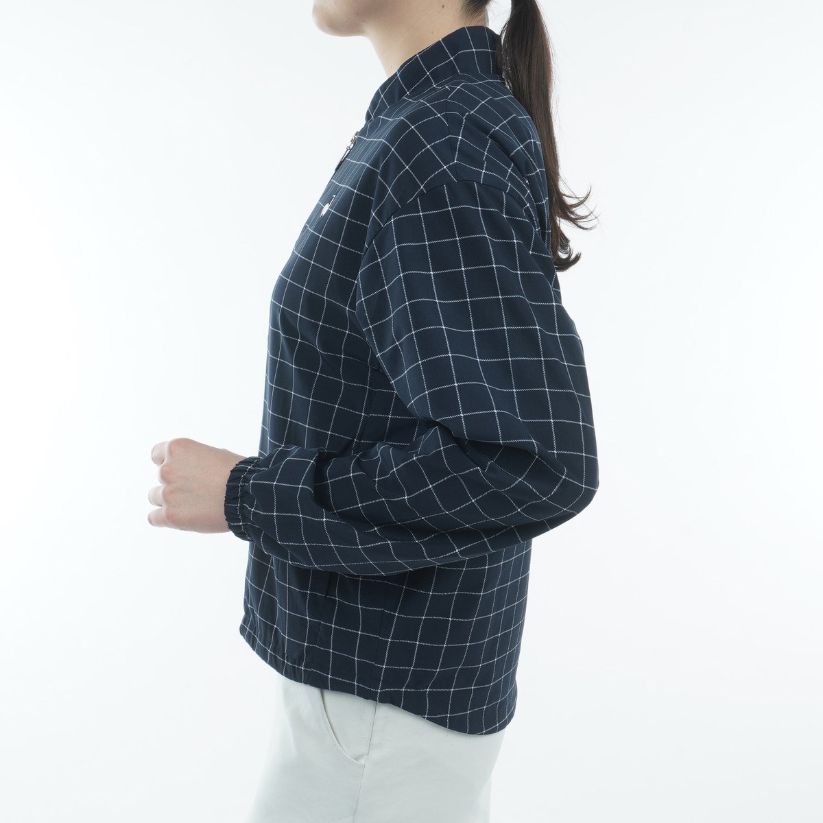 上品なウインドウペン柄が特徴の、着回ししやすいライトブルゾン。
