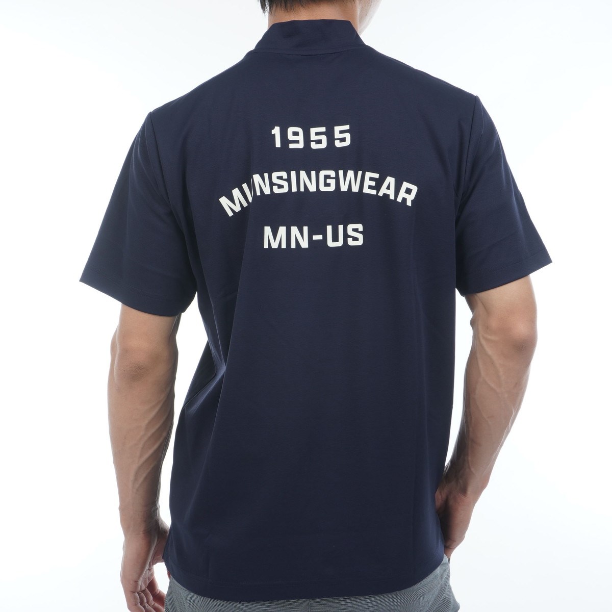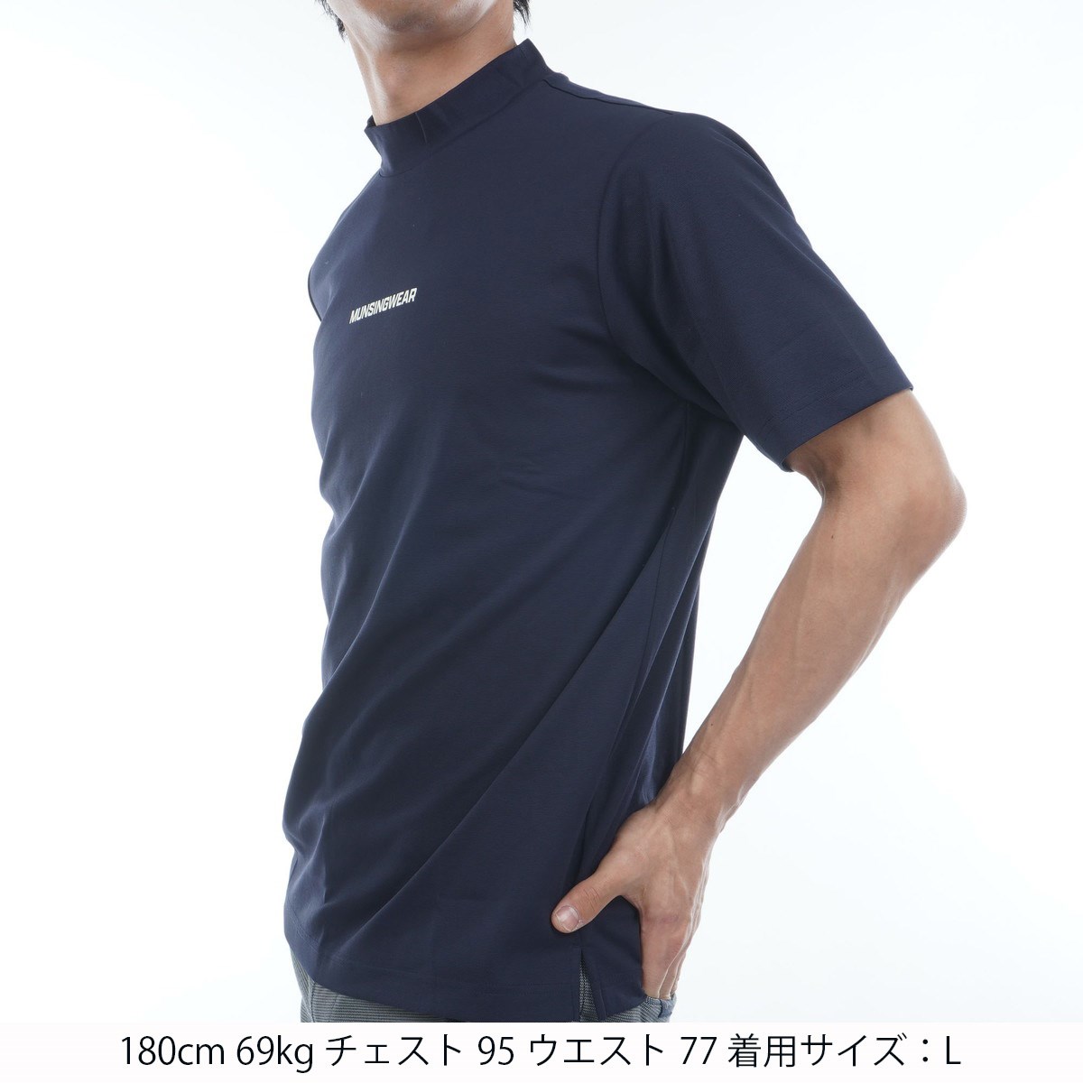 マンシングウェア Munsingwear SEASON サンスクリーン ストレッチ グラフィックプリント モックネック半袖シャツ 3L ネイビー 00