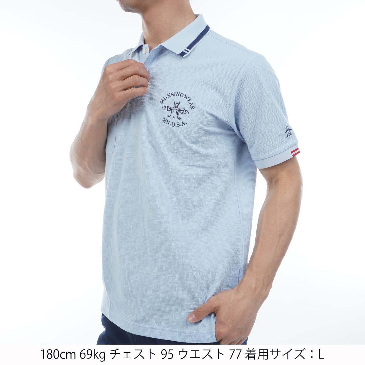 マンシングウェア Munsingwear SEASON ストレッチ シアサッカー半袖ポロシャツ M サックス 00